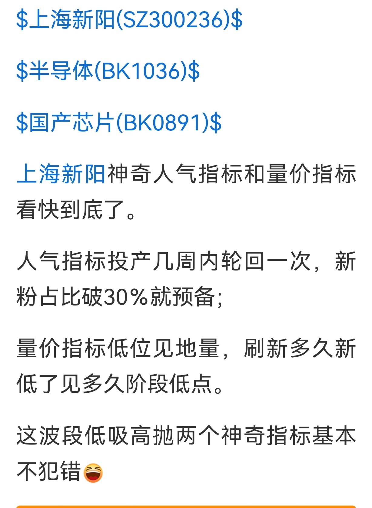 这次上海新阳两个神奇指标是不是又显神威了?七年老渣男上海新阳每次坑底见底都这么神奇?