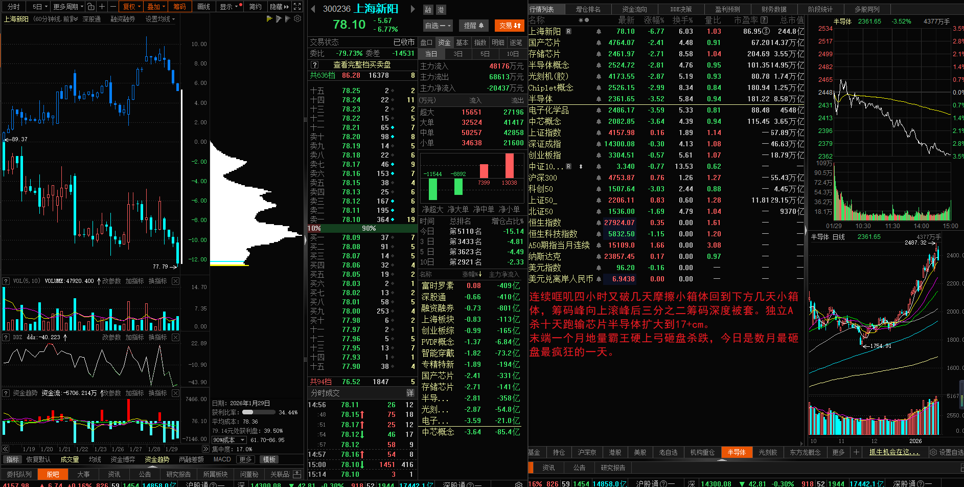 湖北佬再发来贺电——哦呵!七年老渣男大单内盘对倒轰油门真猛烈!半个小时直接跳水缩量跳水4cm,一次性杀到下箱体下沿。