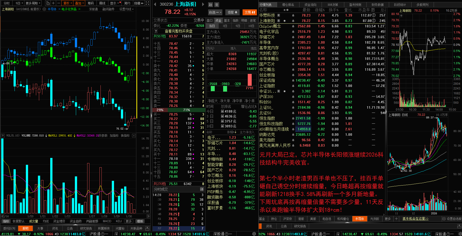 元月大局已定,芯片半导体长阳领涨继续2026科技结构牛完美收官。第七个半小时老渣
