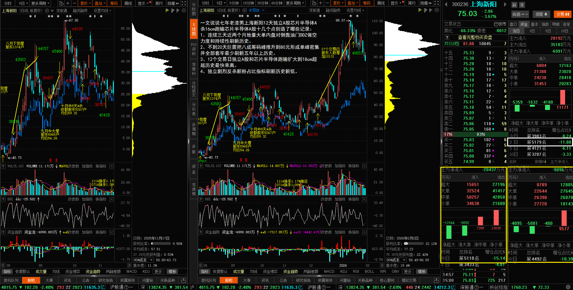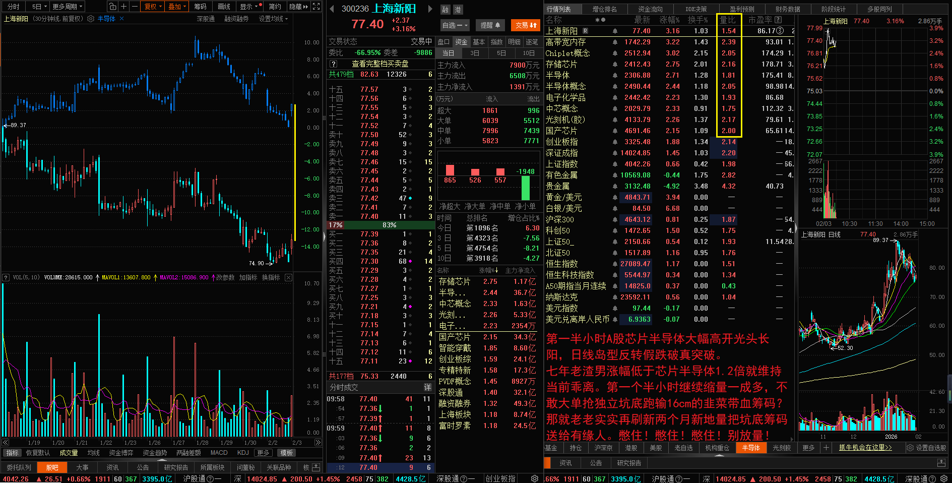 第一半小时A股芯片半导体大幅高开光头长阳,日线岛型反转假跌破真突破。
