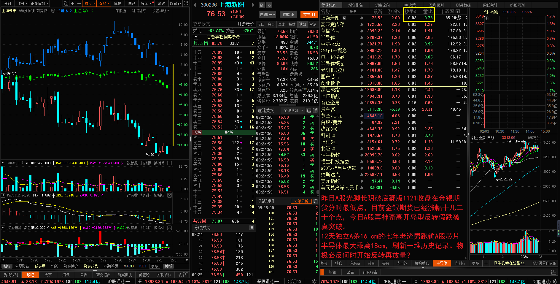 第一半小时A股芯片半导体大幅高开光头长阳,日线岛型反转假跌破真突破。七年老渣男涨