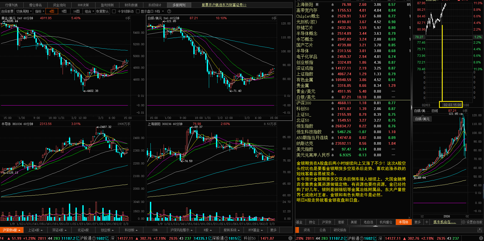 明日A股走势就看金银夜盘和日盘。