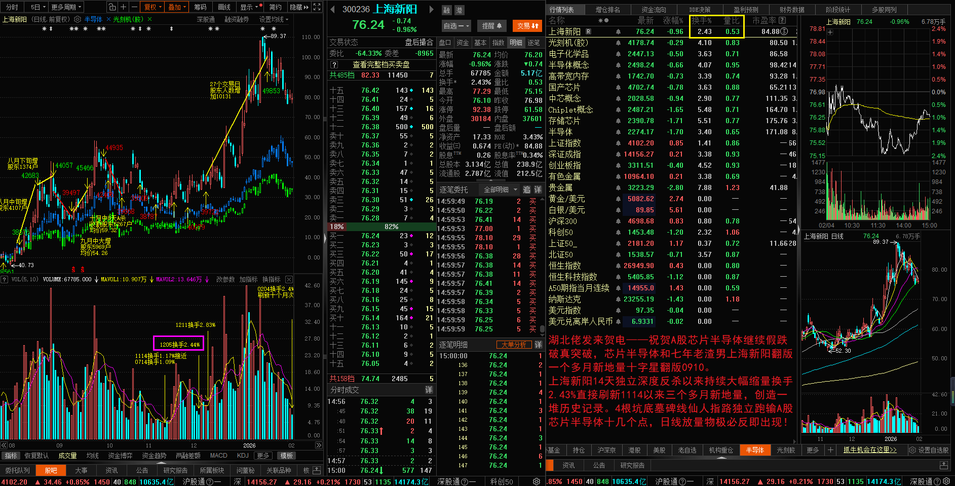 湖北佬发来贺电——祝贺A股芯片半导体继续假跌破真突破,芯片半导体和七年老渣男上海新阳翻版一个多月新地量十字星翻版0910。