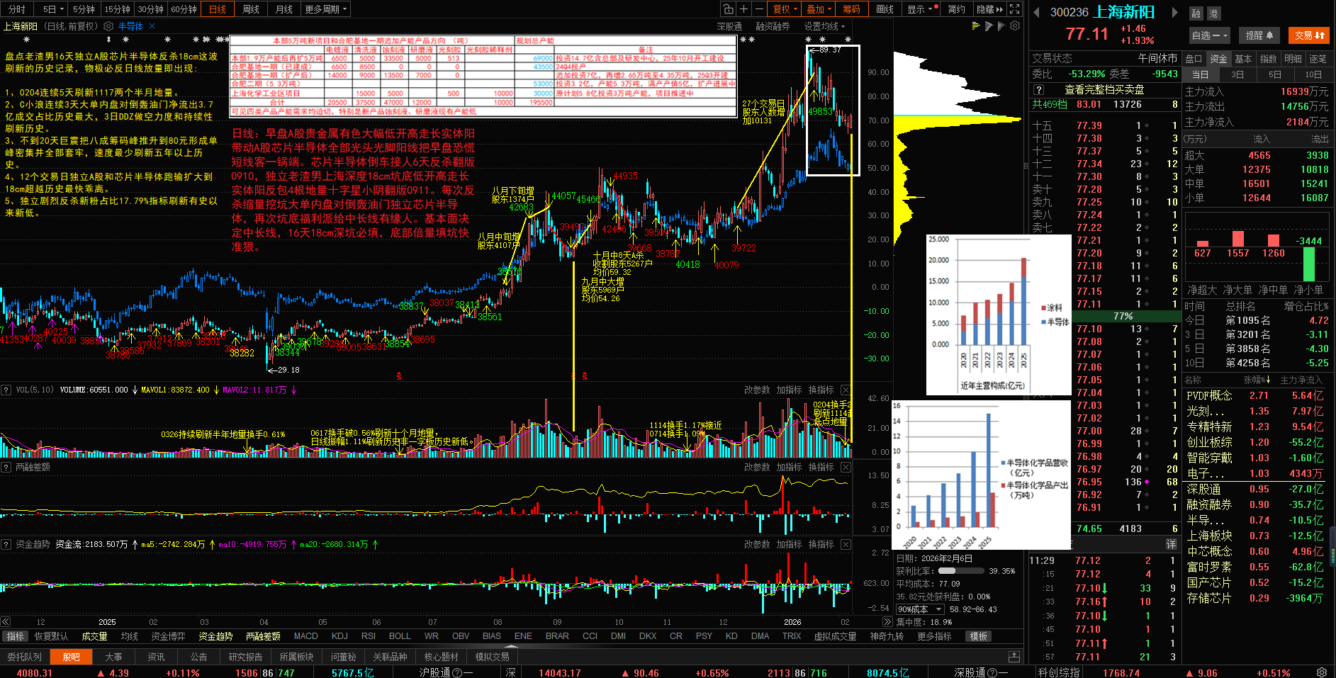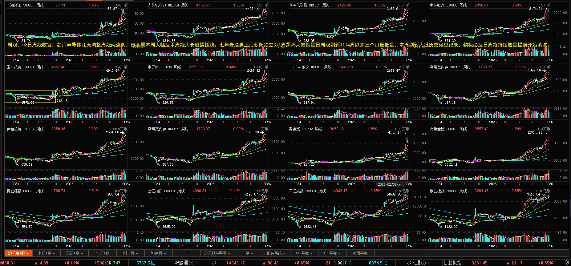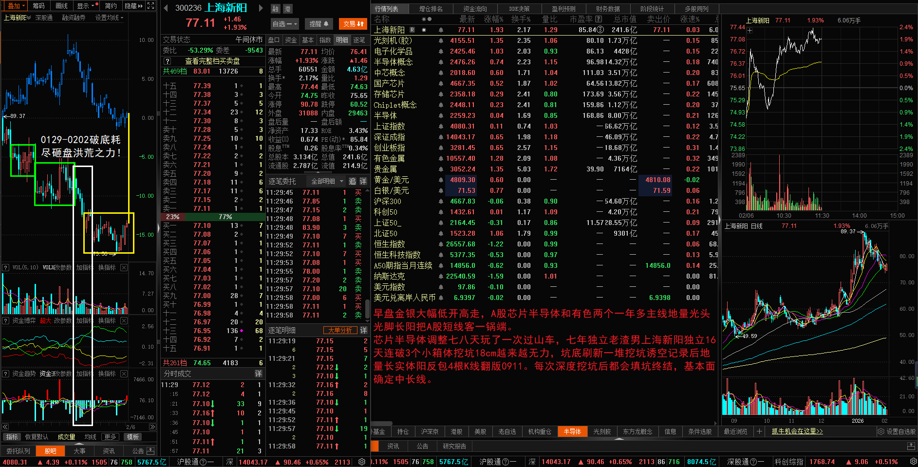 早盘金银大幅低开高走,A股芯片半导体和有色两个一年多主线地量光头光脚长阳把A股短