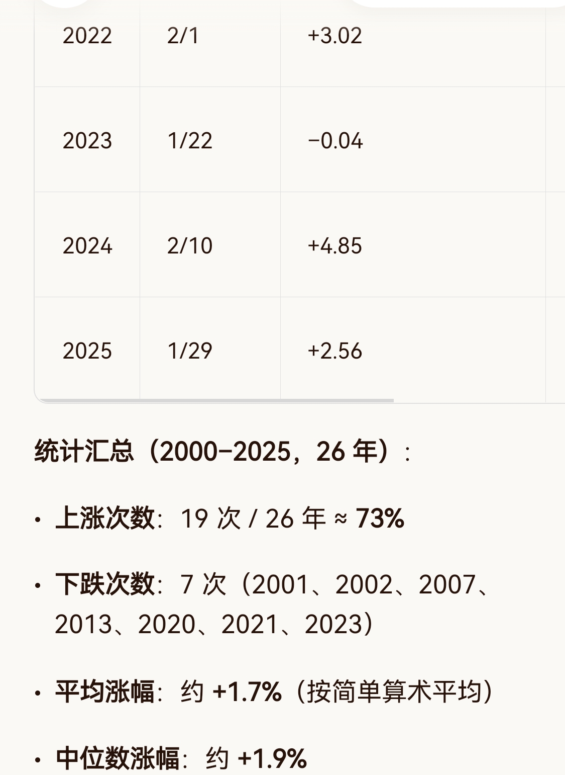 过去26年节后首周上涨概率73%,均涨幅1.7%(三年期定存利率)。2026康波周期繁荣年份,估计涨幅翻倍。