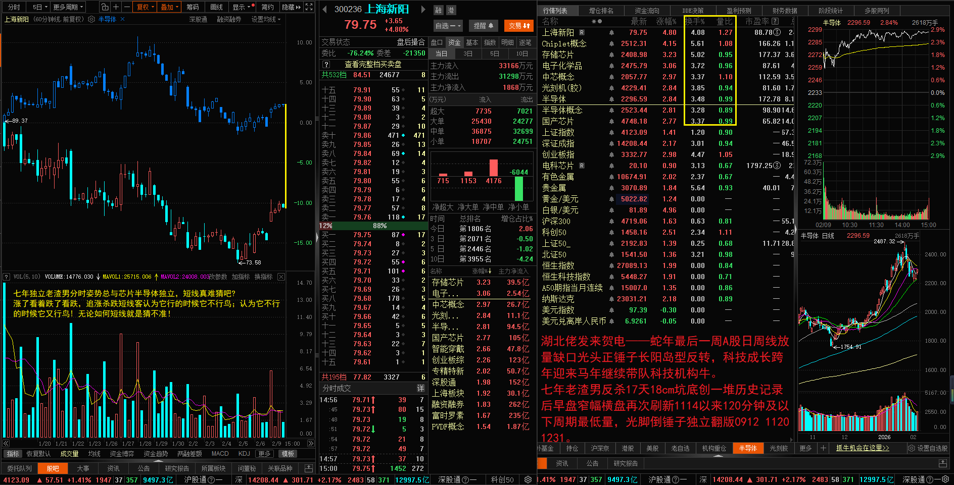 节前最后一周A股芯片半导体平开,七年老渣男上海新阳独立A杀18cm挖坑近一个月以