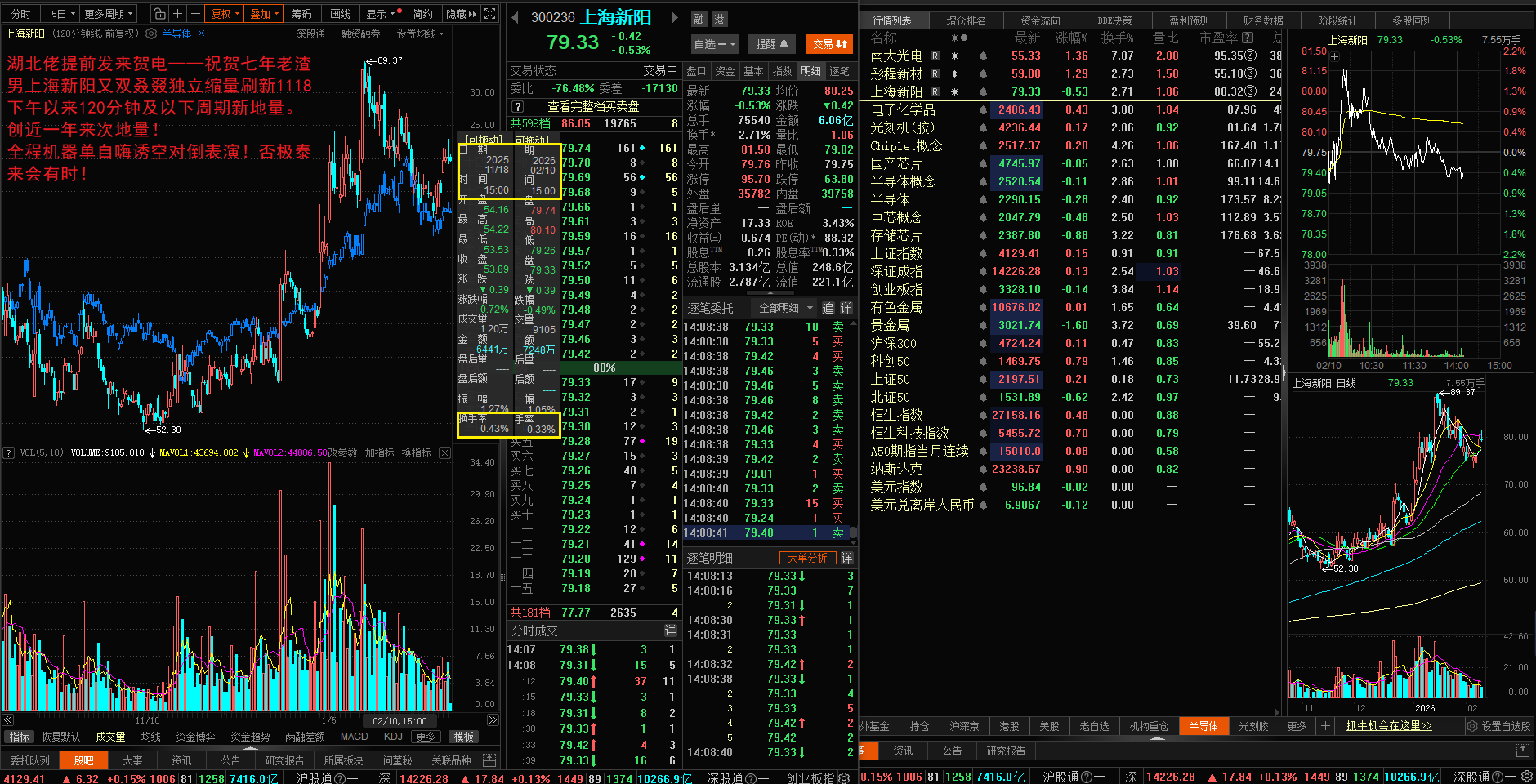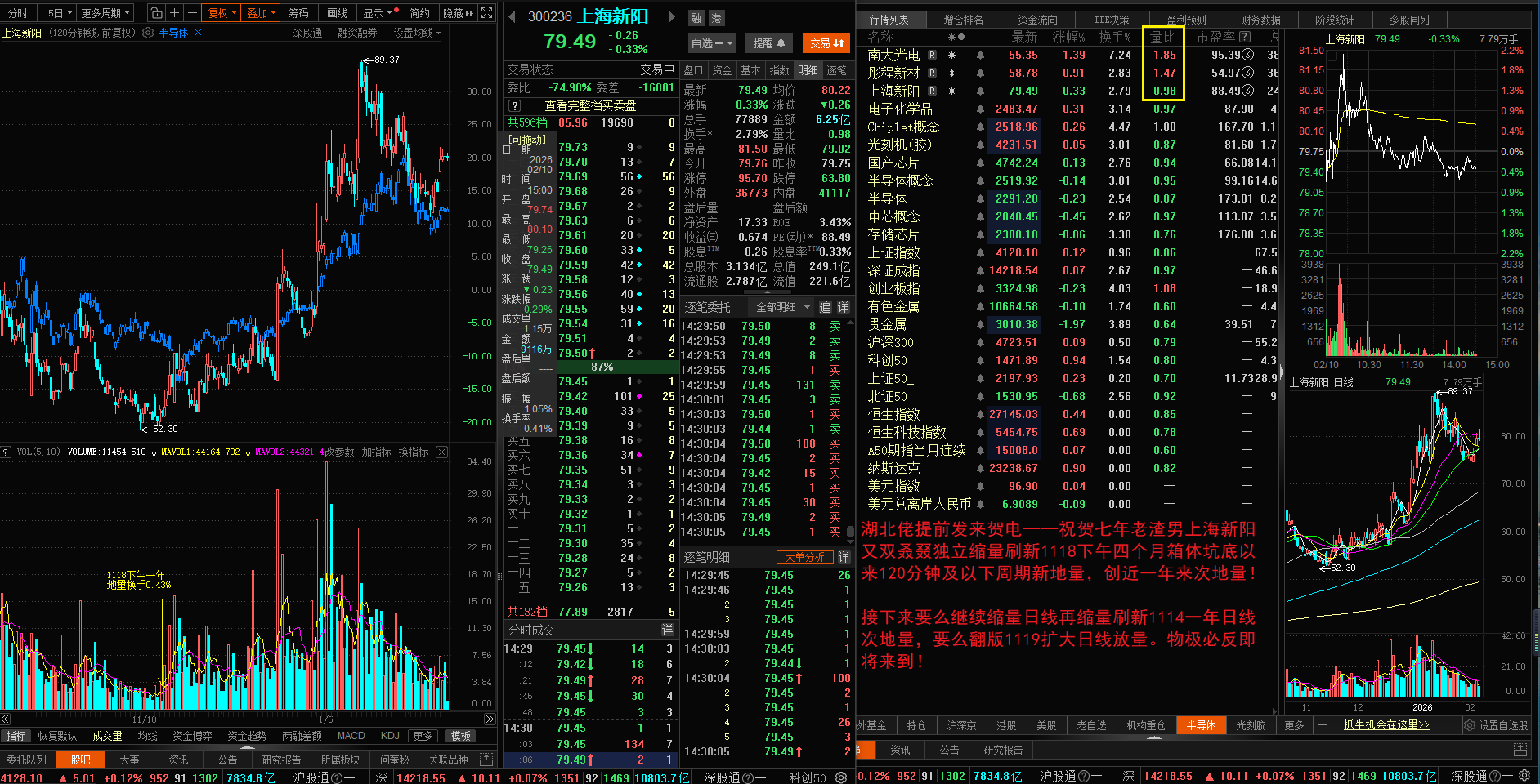 湖北佬提前发来贺电——祝贺七年老渣男上海新阳又双叒叕独立缩量刷新1118下午四个