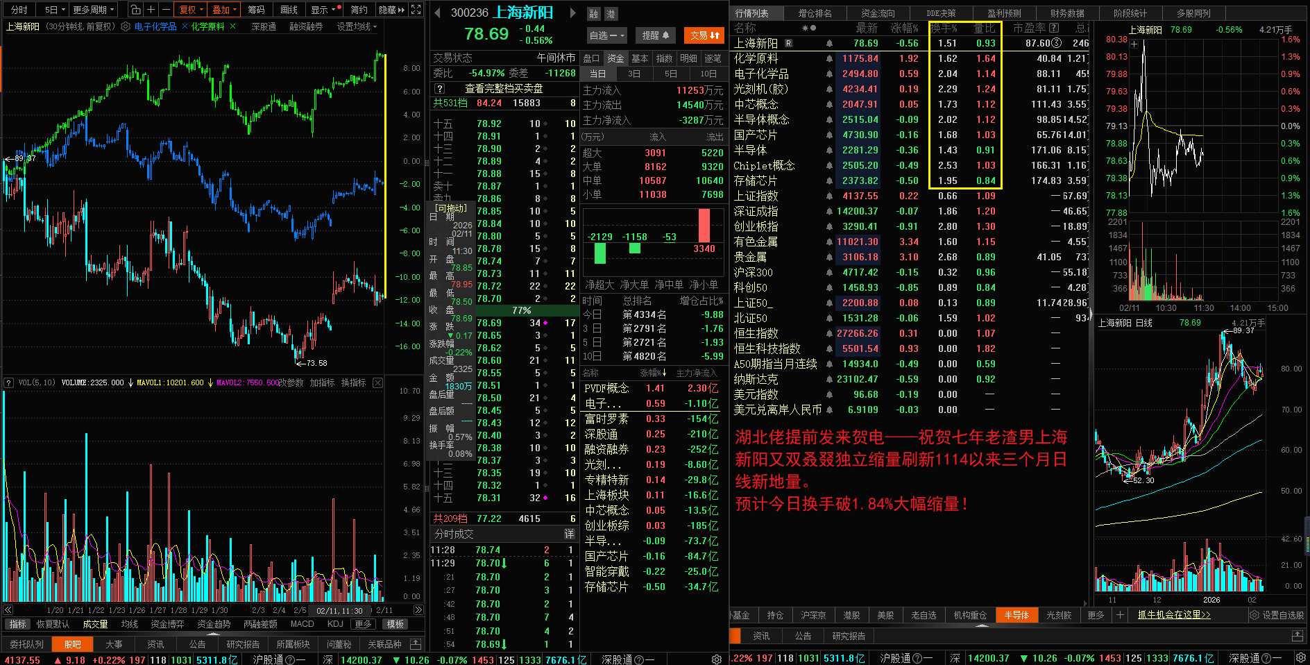 湖北佬又双叒叕提前发来贺电——祝贺七年老渣男上海新阳又双叒叕独立缩量刷新1114
