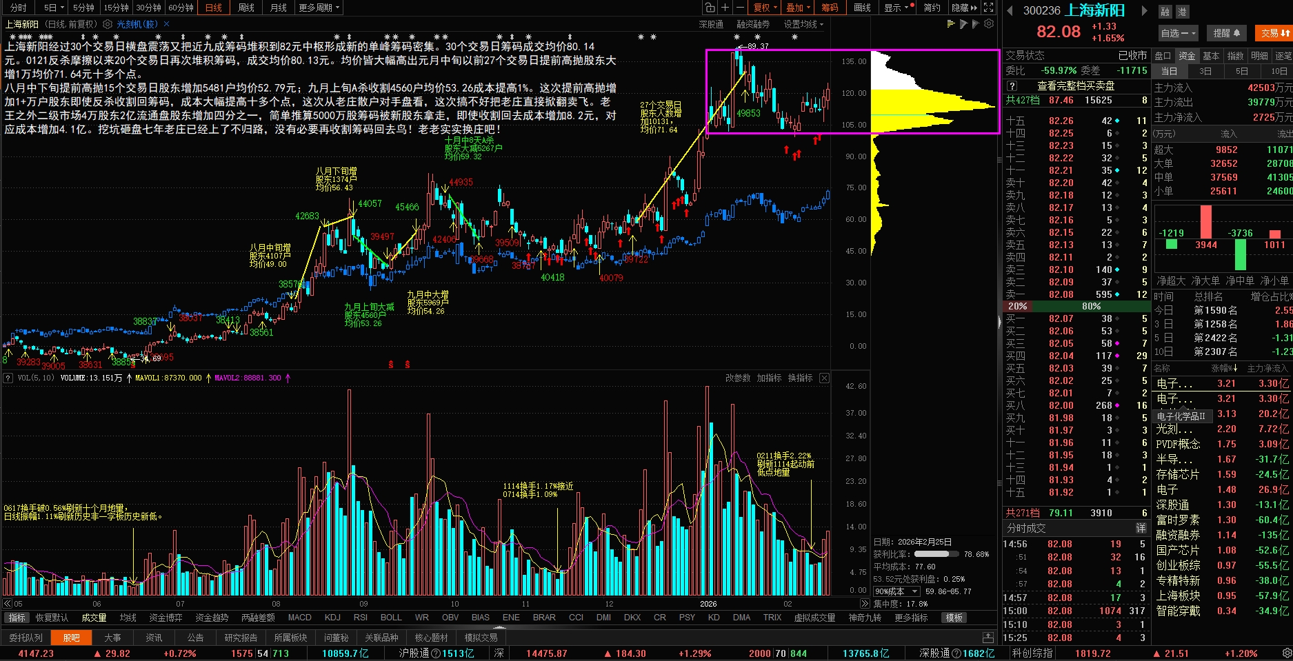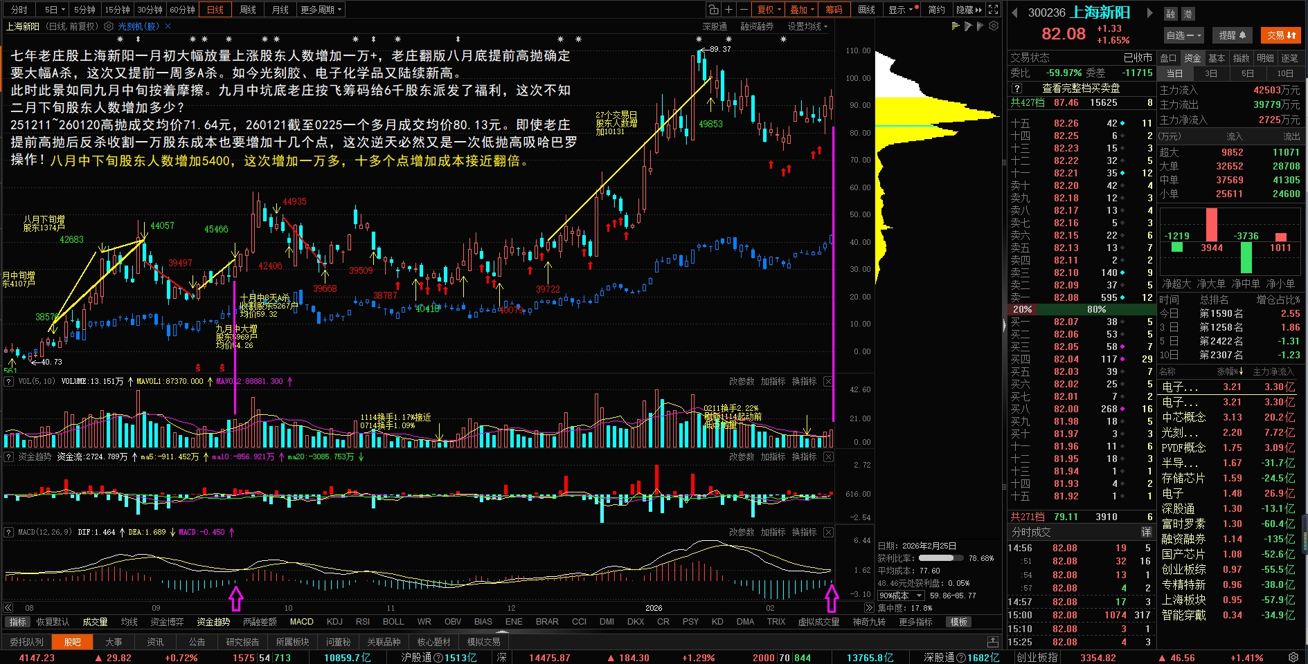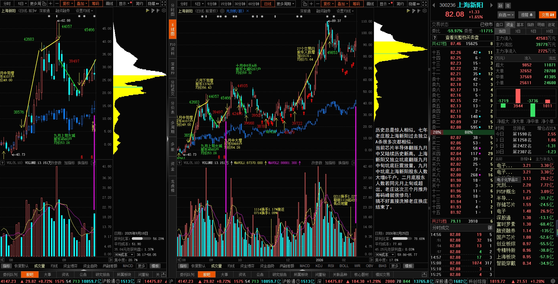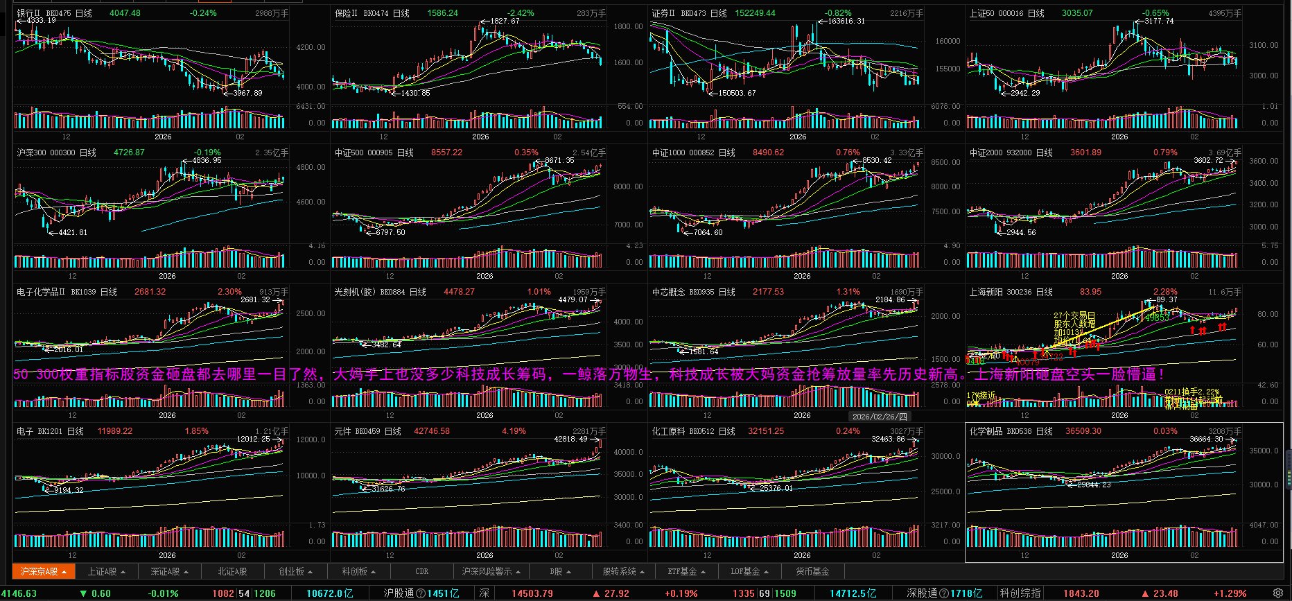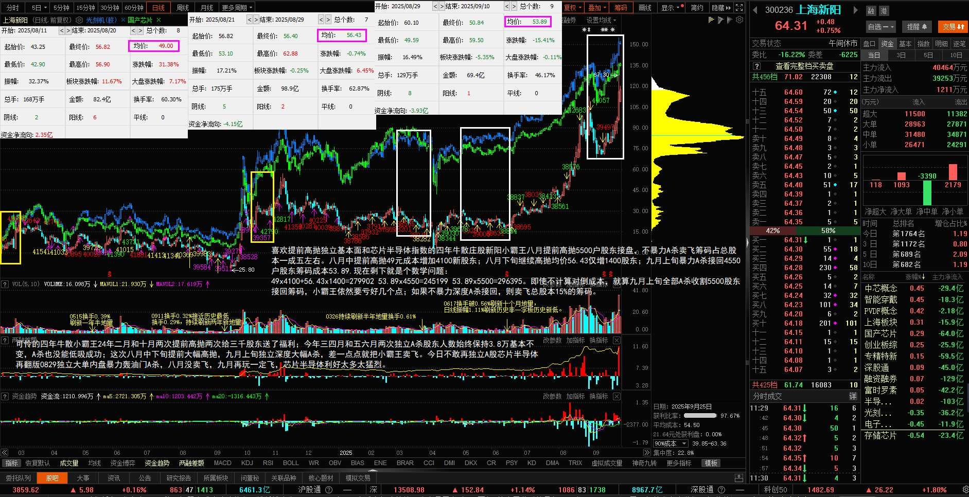 今天光刻胶、高带宽内存已经刷新历史新高,每天再来根中阳线,电子化学品、中芯概念、半导体概念也要刷新历史新高,这次把七年独立挖坑老庄洗出去不难、提前高抛增加一万多股东容易,要追回筹码起码加价十几个点。