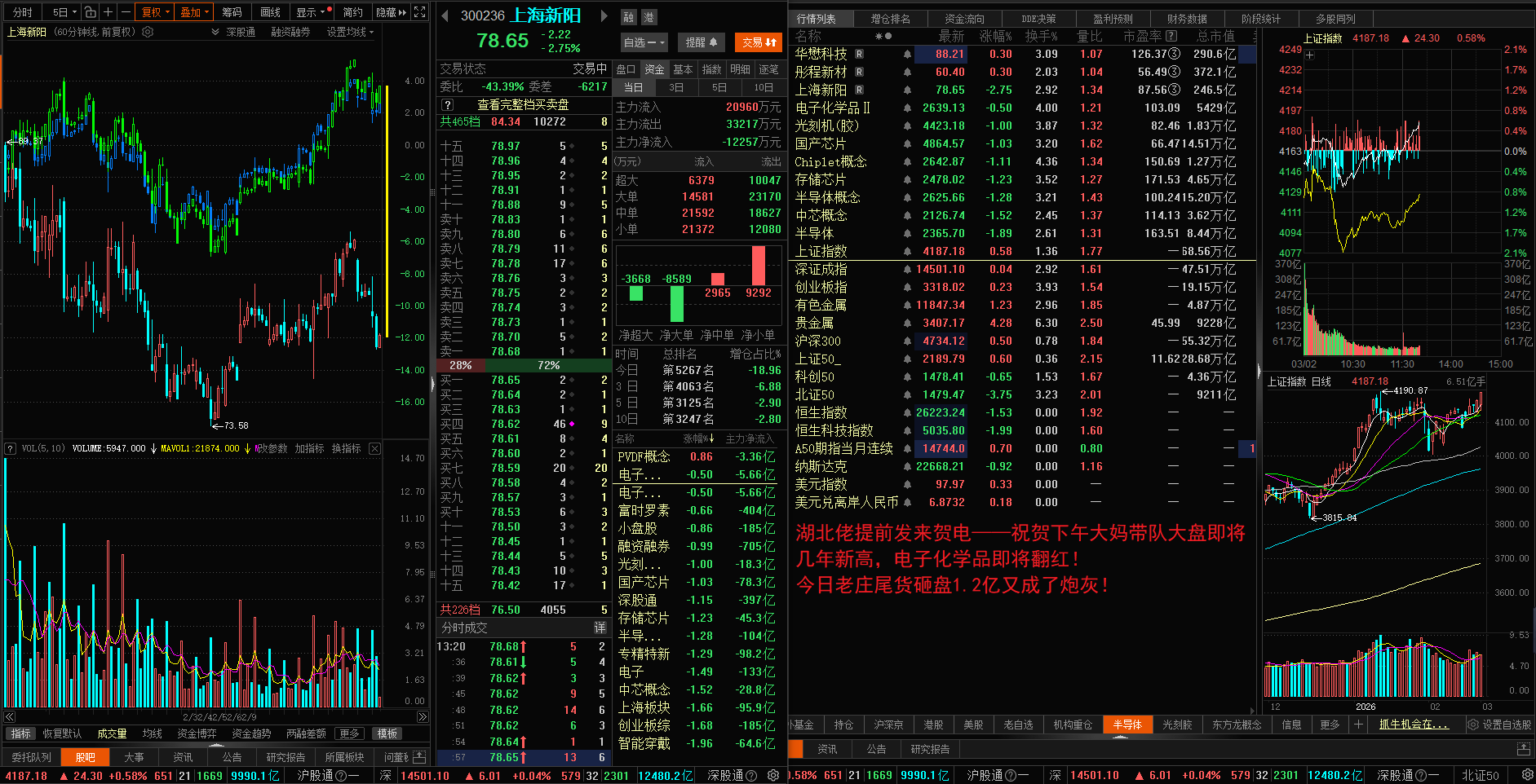 湖北佬提前发来贺电——祝贺下午大妈带队大盘即将几年新高,电子化学品即将翻红!今日