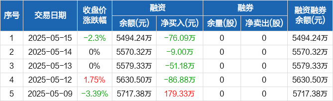 美晨科技:连续4日融资净偿还累计223.14万元(05-15)