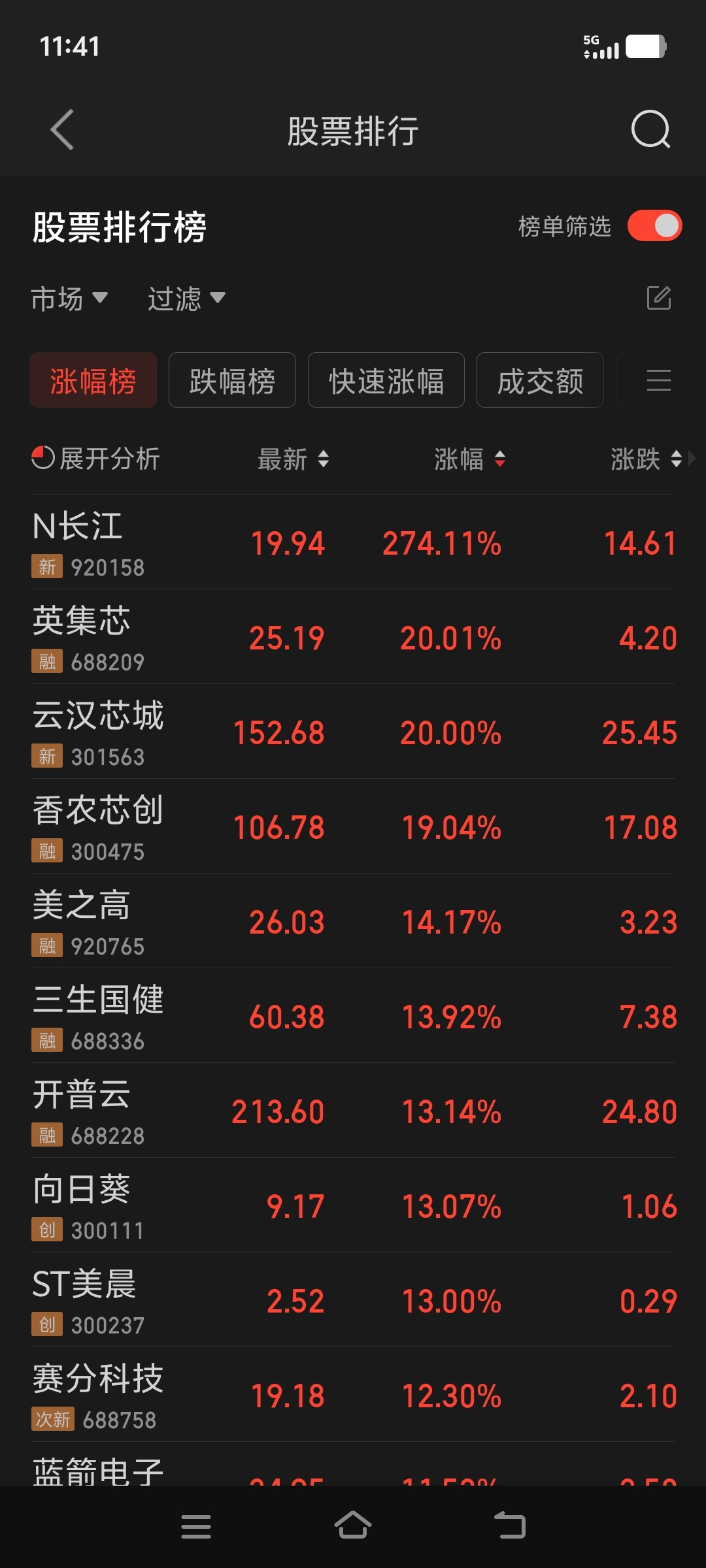 上午涨幅已进入两市排名前十名,收盘涨幅20.18%,争取排名第二!