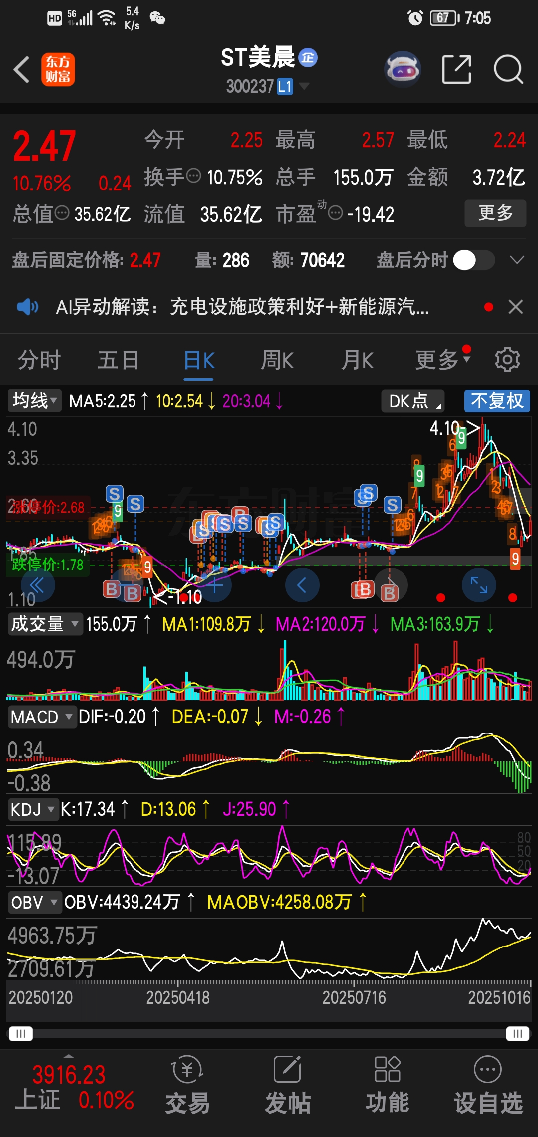 $ST美晨(SZ300237)$ 每一次卖完美精准避开涨停!每一次买必跌!