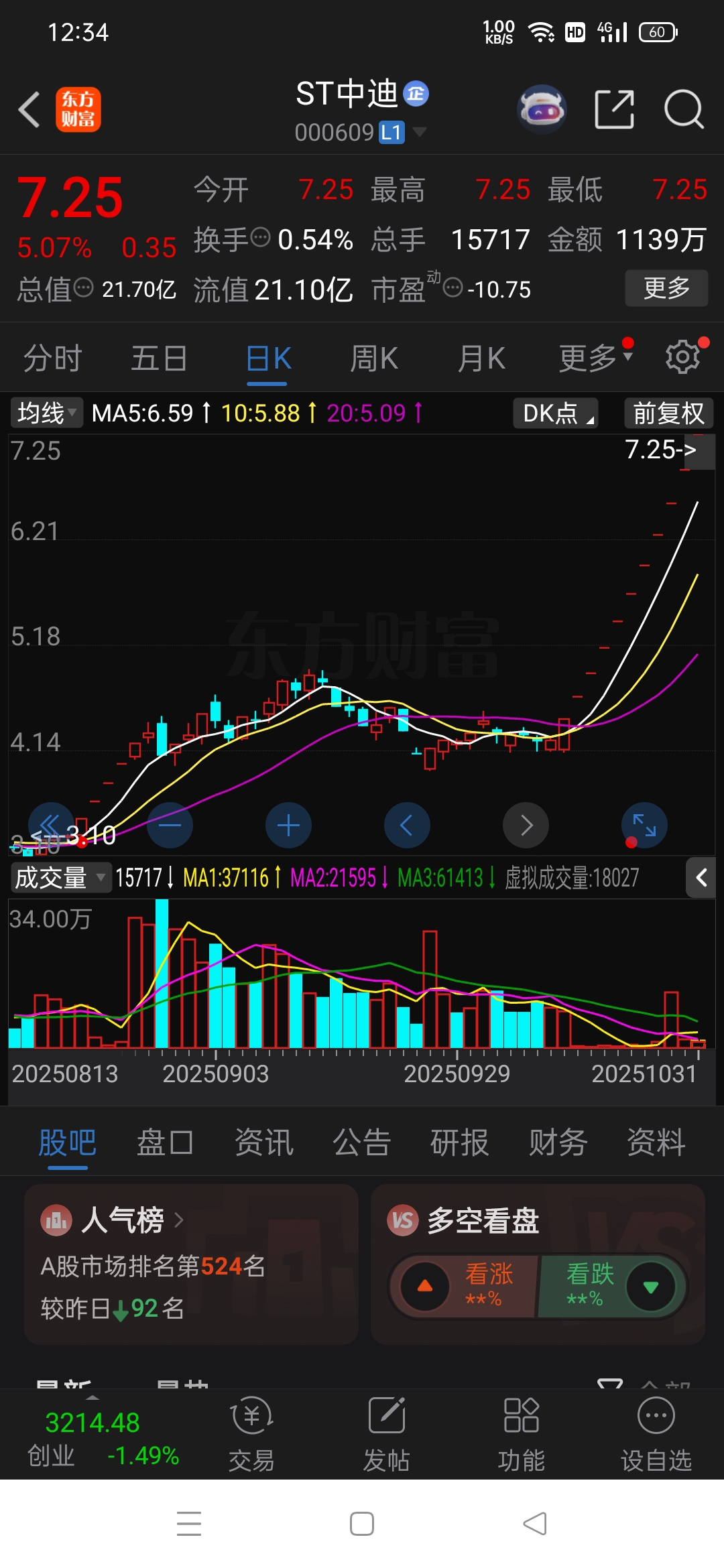 看看其他的ST,ST新华锦,和本公司一起戴帽的,已经十连板