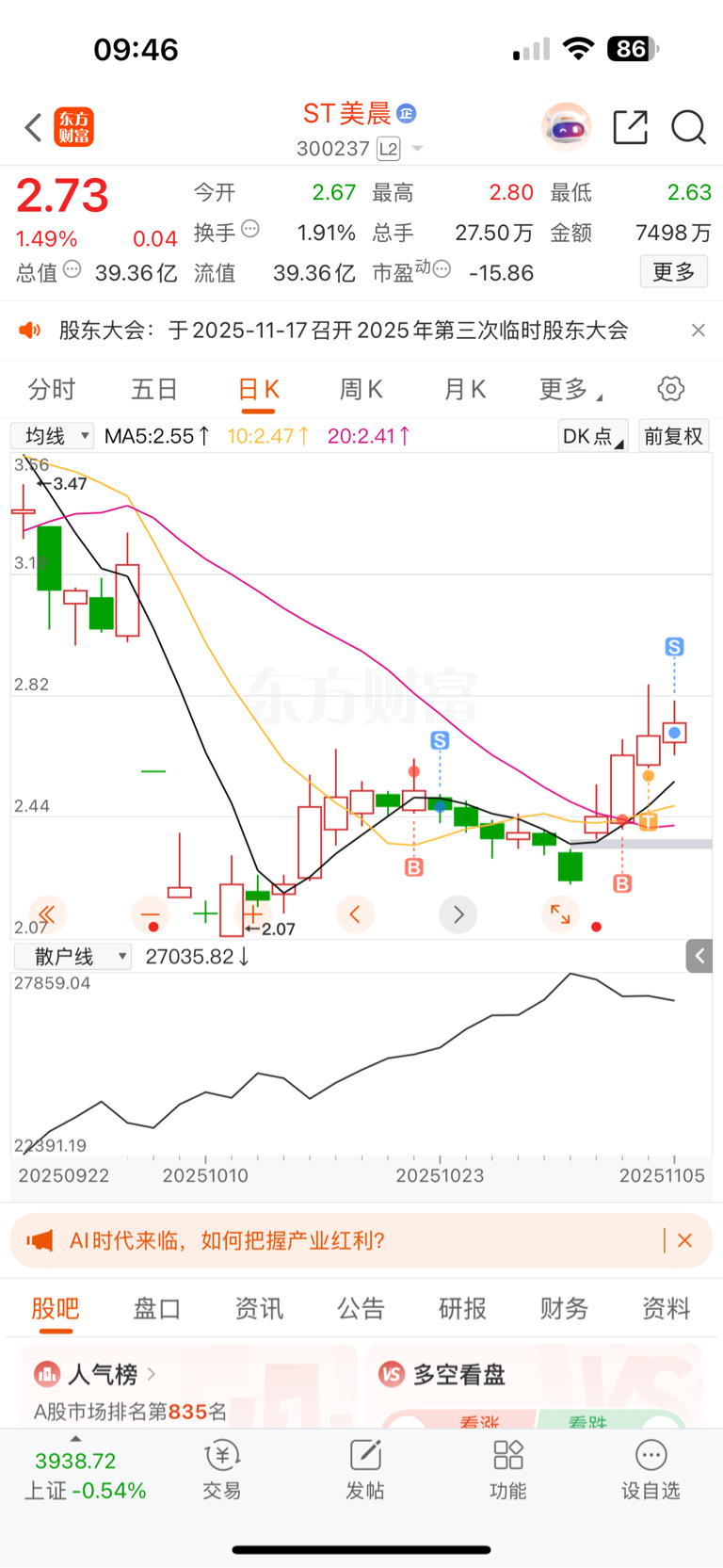 $ST美晨(SZ300237)$ 留下的兄弟发财我先走了