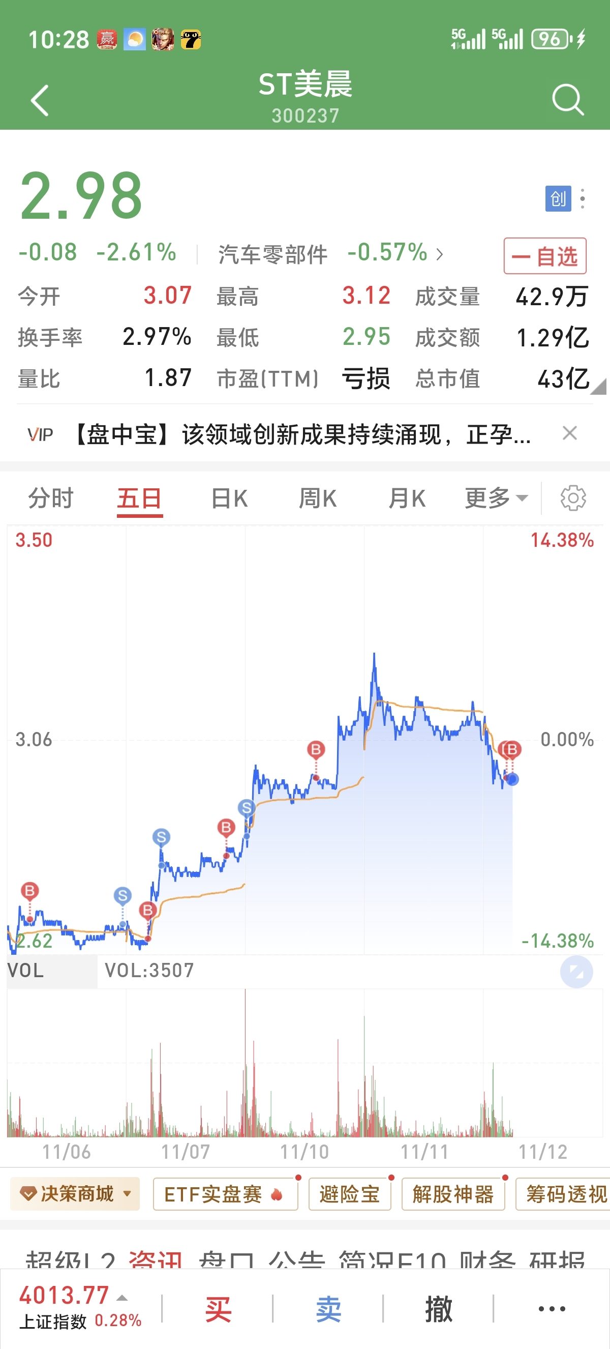 $ST美晨(SZ300237)$ 不到五块高低不卖