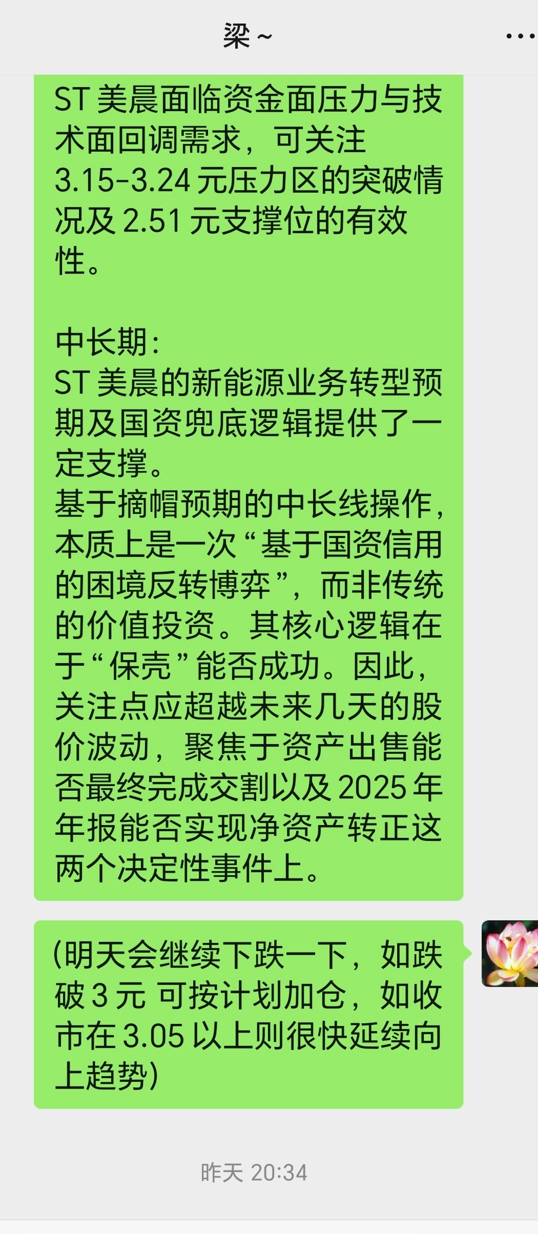 昨晚群友问,美晨今天冲上3元了,后续怎么操作?我说:明天或后天可能会回踩,但我相信幅度有限… 持有/跌破3元可加仓。