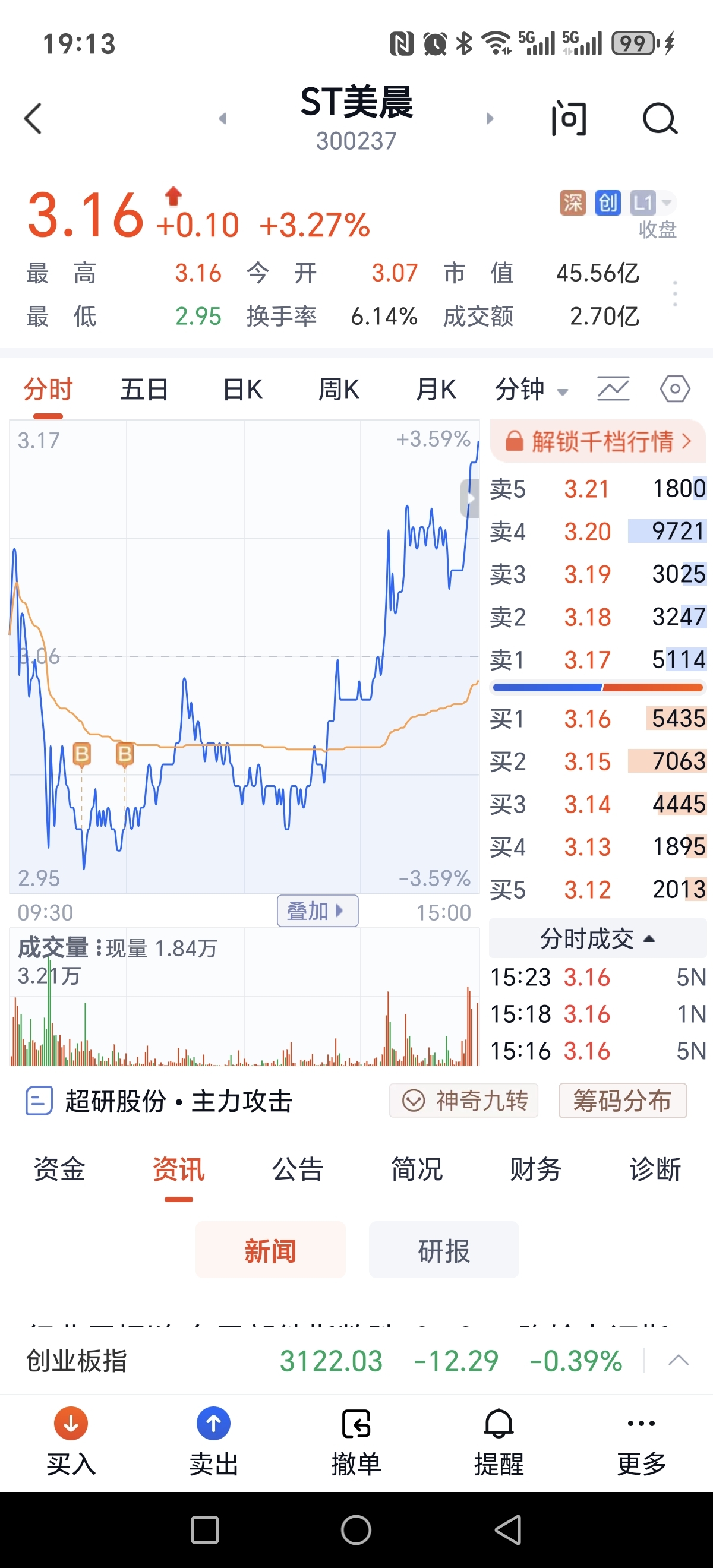 $ST美晨(SZ300237)$ 还是这个主力强悍。今天盈利美晨功不可没。