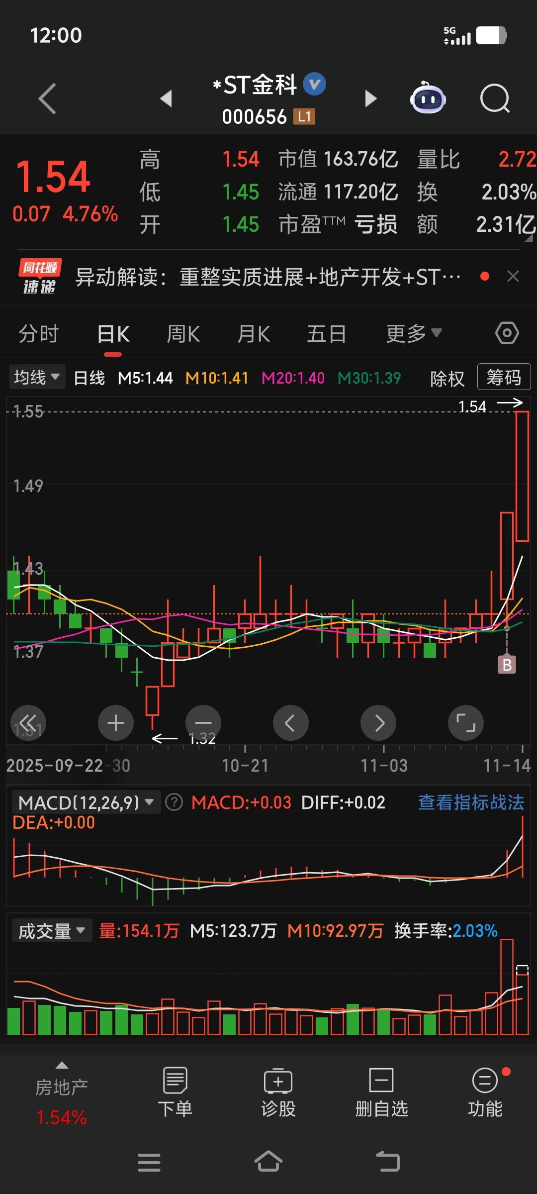 金科1.4买入,已经赚了10个点了,金科重整成功+还有摘帽预期=下个礼拜可能有5