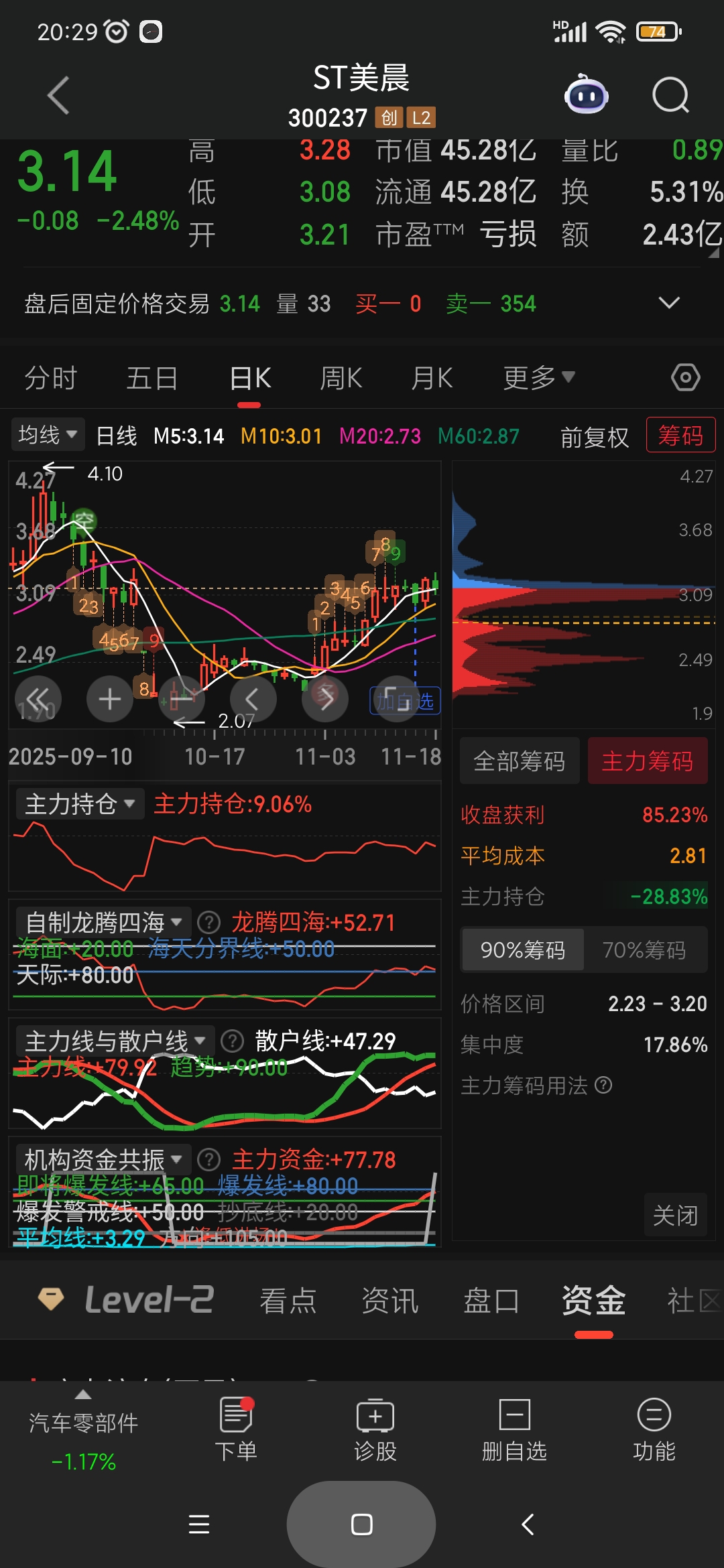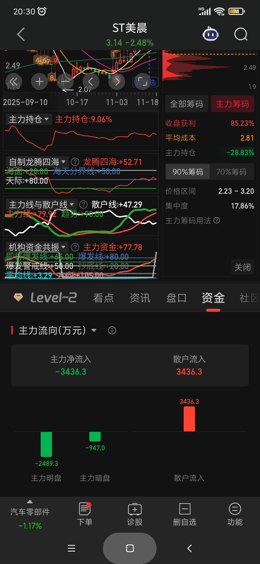 今日主力净卖出3436.3万元,截止今日主力成本2.81元,明日支撑位3.09,