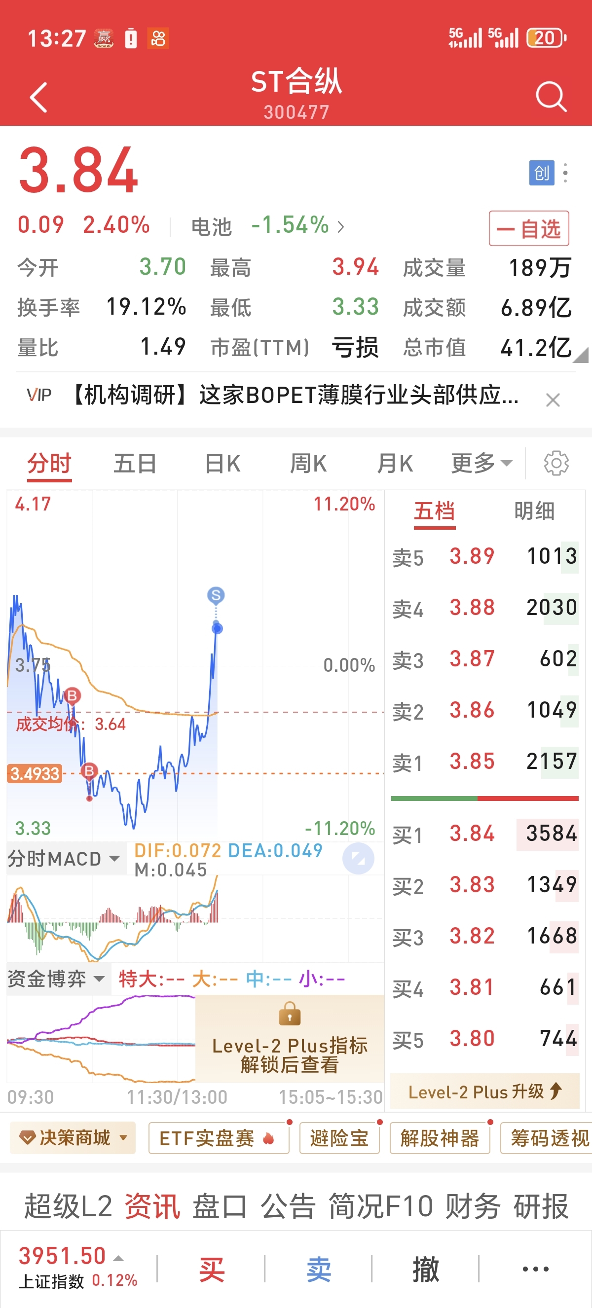 $ST美晨(SZ300237)$ 去合纵吃了个肉,我又回来了