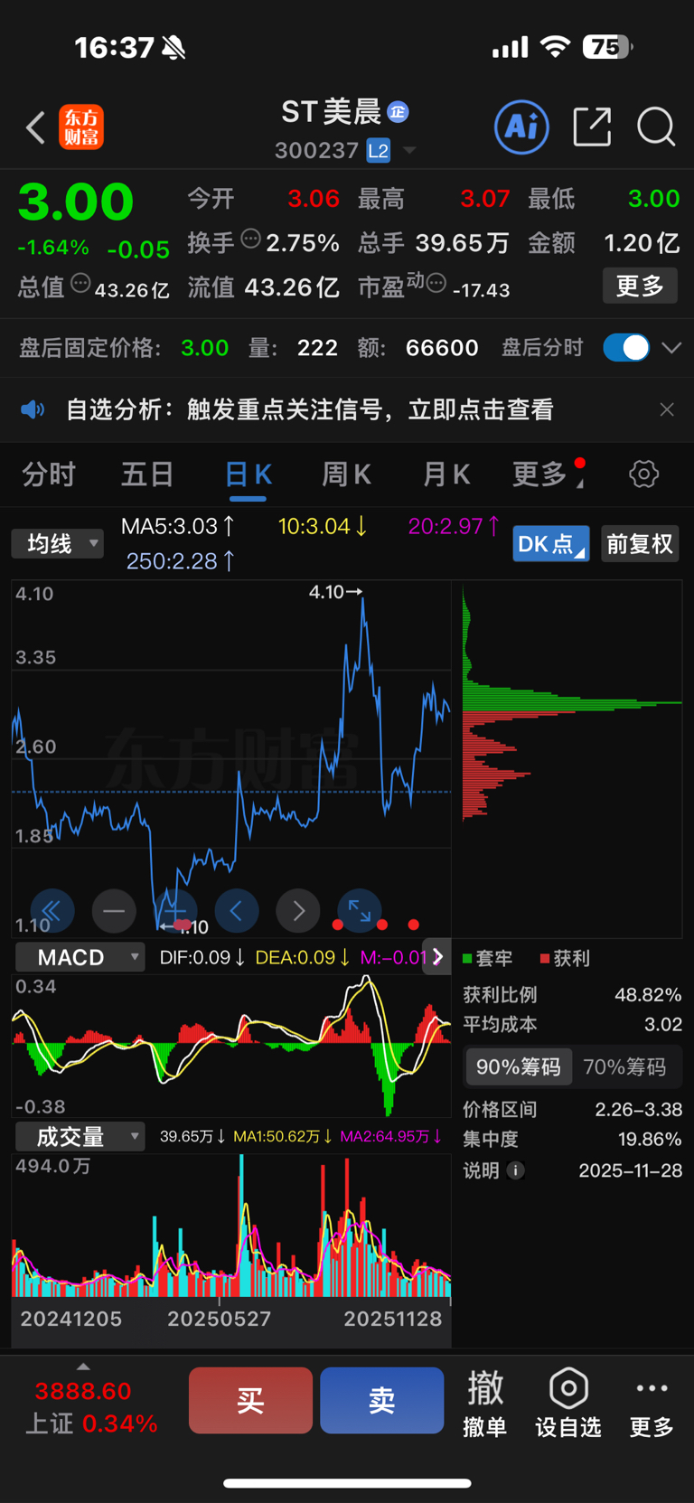 $ST美晨(SZ300237)$ 看这筹码峰感觉洗的差不多了吧