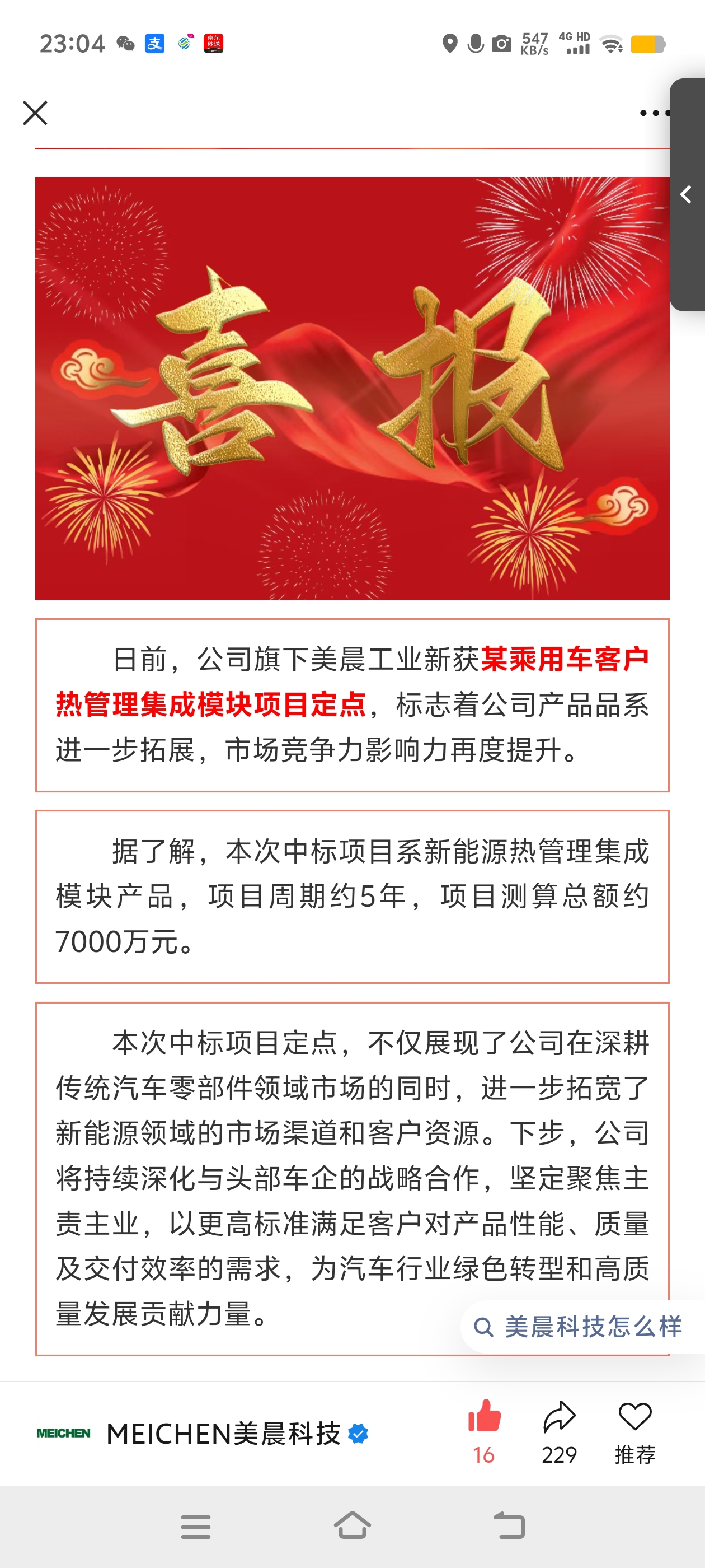 $ST美晨(SZ300237)$ 7000万大单明天大高开