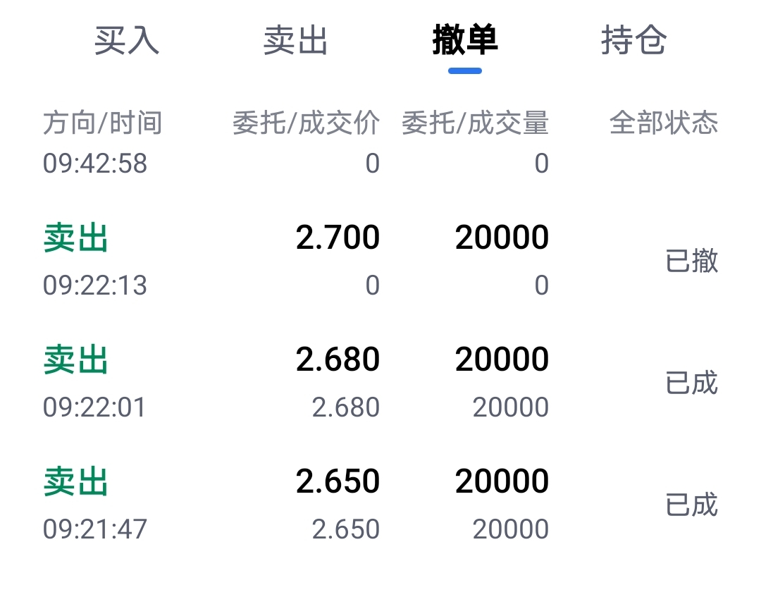 2.7挂单这么早你不吃,那我撤单咯。下午2.62左右看能不能接住