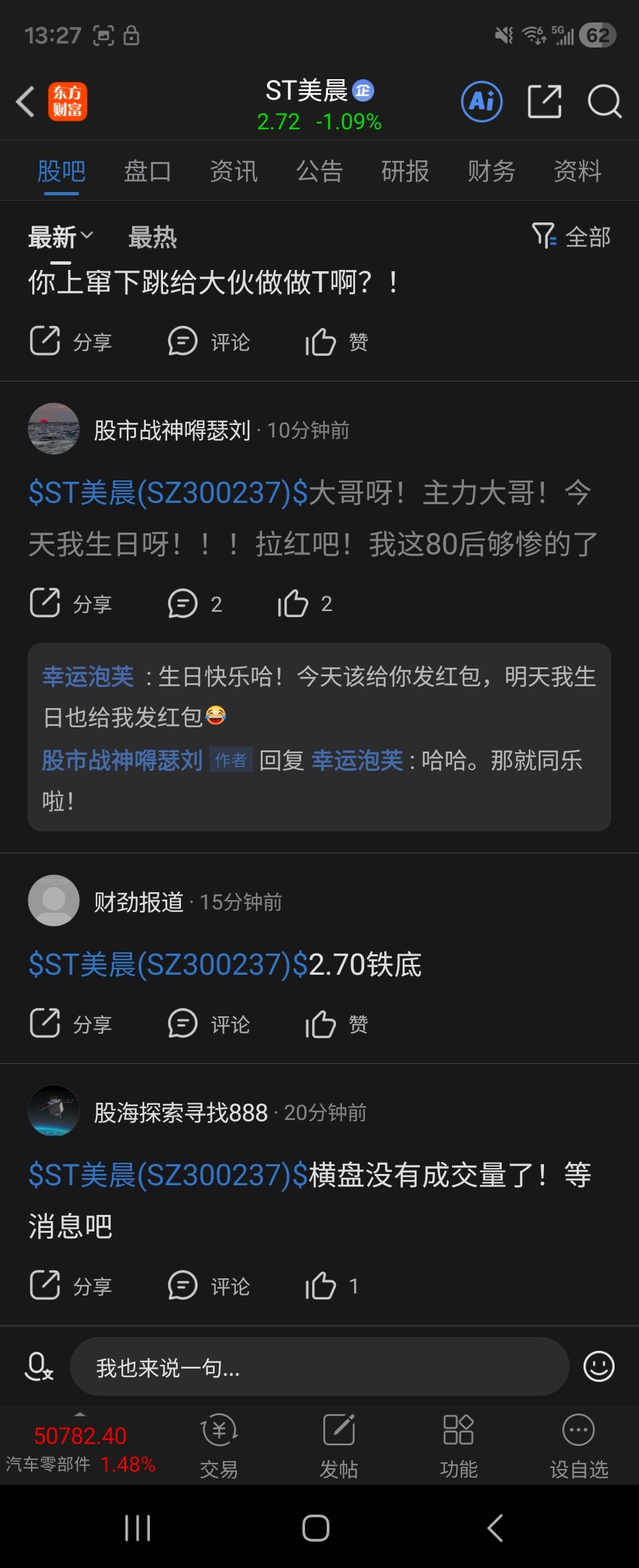温馨提示: 1.根据《证券法》规定,禁止编造、传播虚假信息或者误导性信息,扰乱证券市场;2.用户在本社区发表的所有资料、言论等仅代表个人观点,与本网站立场无关,不对您构成任何投资建议。用户应基于自己的独立判断,自行决定证券投资并承担相应风险。《东方财富社区管理规定》