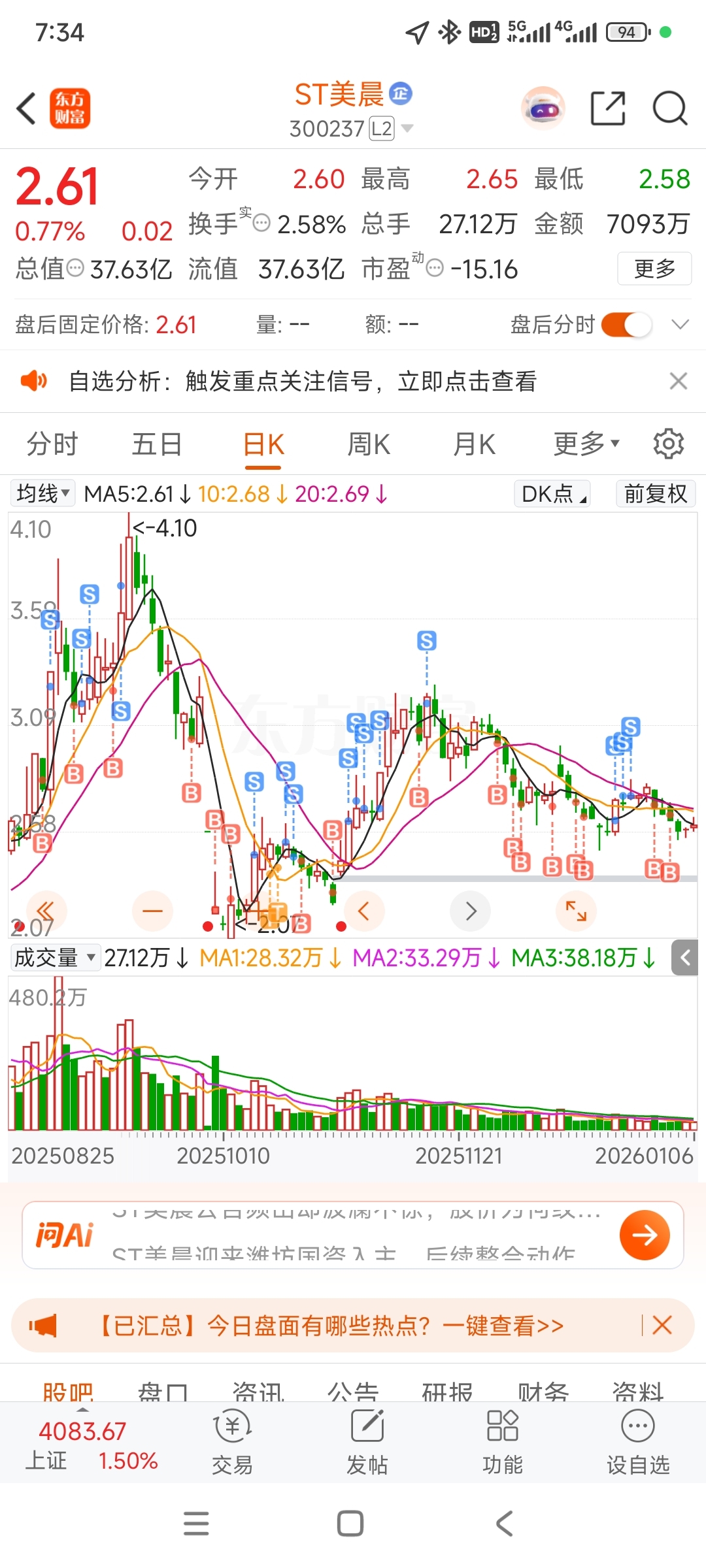 $ST美晨(SZ300237)$ 已经没钱补了,大盘这么高了,这里最安全!