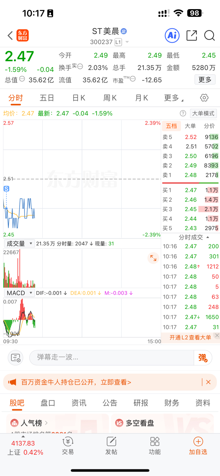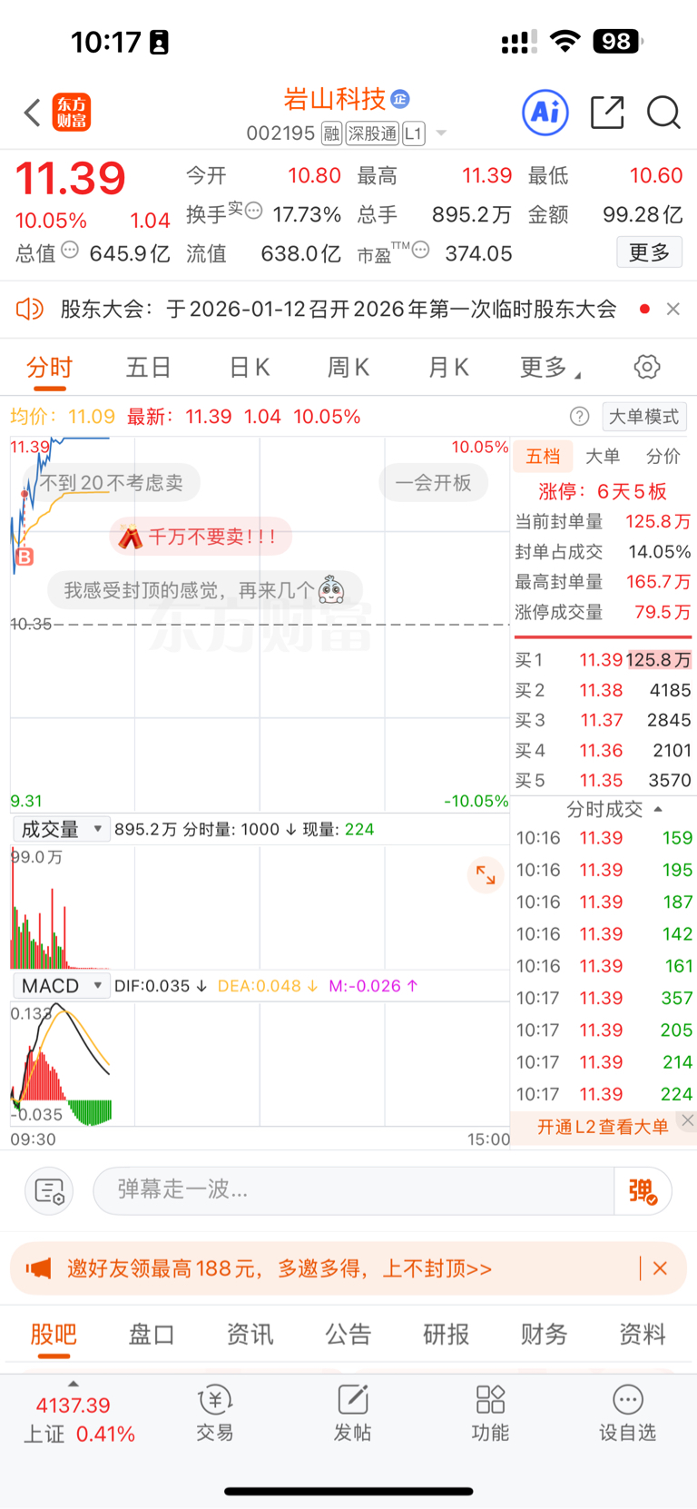 温馨提示: 1.根据《证券法》规定,禁止编造、传播虚假信息或者误导性信息,扰乱证券市场;2.用户在本社区发表的所有资料、言论等仅代表个人观点,与本网站立场无关,不对您构成任何投资建议。用户应基于自己的独立判断,自行决定证券投资并承担相应风险。《东方财富社区管理规定》
