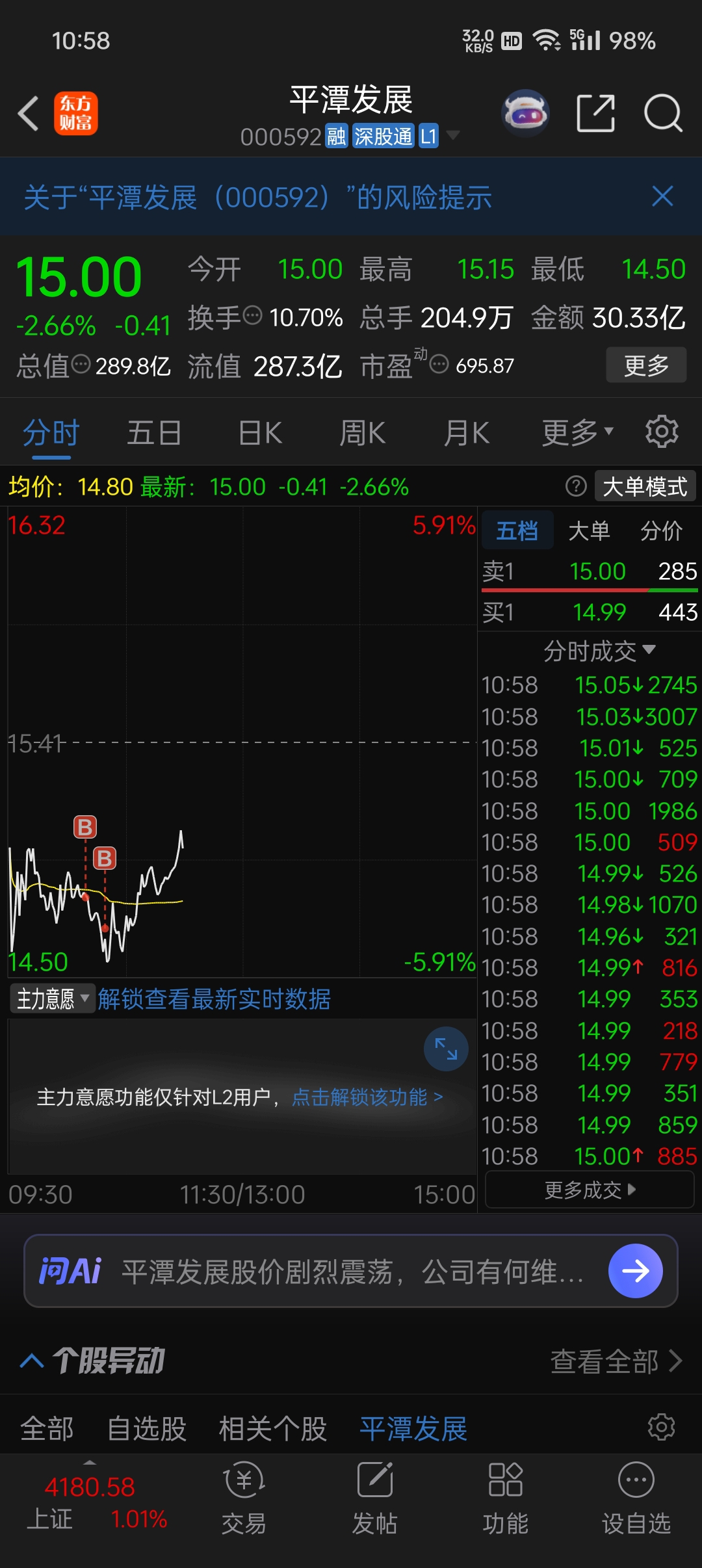 温馨提示: 1.根据《证券法》规定,禁止编造、传播虚假信息或者误导性信息,扰乱证券市场;2.用户在本社区发表的所有资料、言论等仅代表个人观点,与本网站立场无关,不对您构成任何投资建议。用户应基于自己的独立判断,自行决定证券投资并承担相应风险。《东方财富社区管理规定》