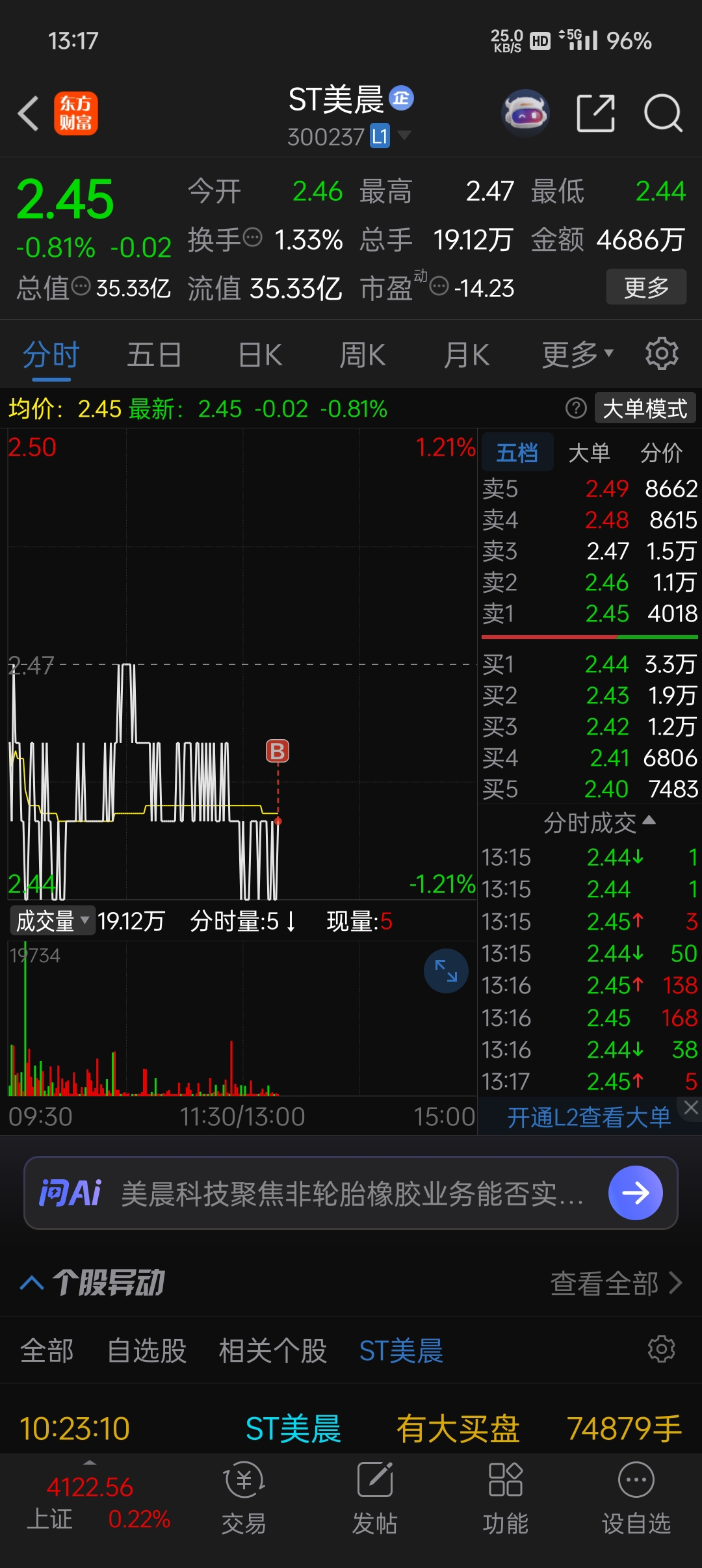 $ST美晨(SZ300237)$ 245再次建仓。上次割肉我还疼呢。我说了,今年和你纠缠到底。跌倒2块钱再加一次仓。1.5再加一次。让我错过一波行情,那我就和你纠缠到底。缠到2027年元旦再说。