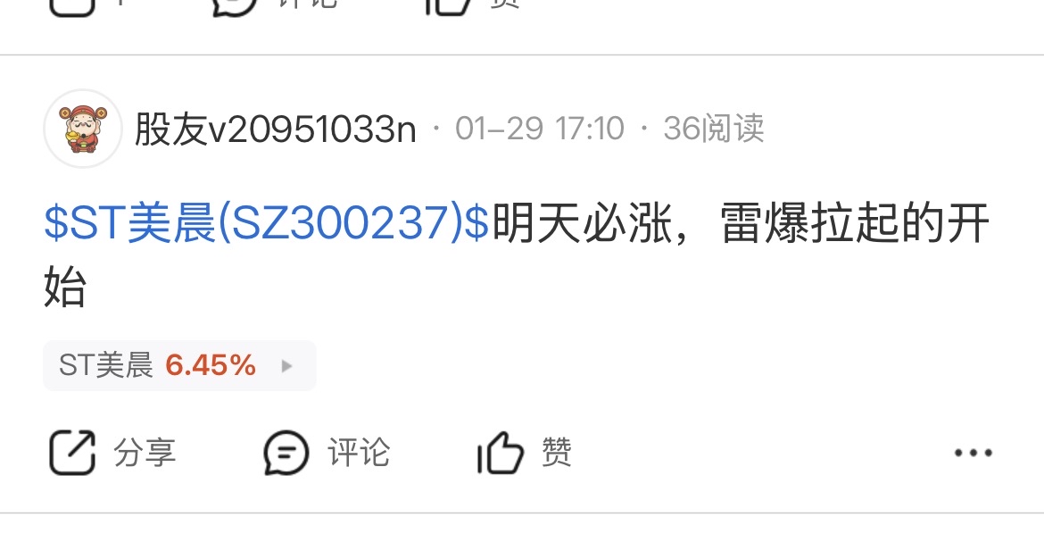 温馨提示: 1.根据《证券法》规定,禁止编造、传播虚假信息或者误导性信息,扰乱证券市场;2.用户在本社区发表的所有资料、言论等仅代表个人观点,与本网站立场无关,不对您构成任何投资建议。用户应基于自己的独立判断,自行决定证券投资并承担相应风险。《东方财富社区管理规定》