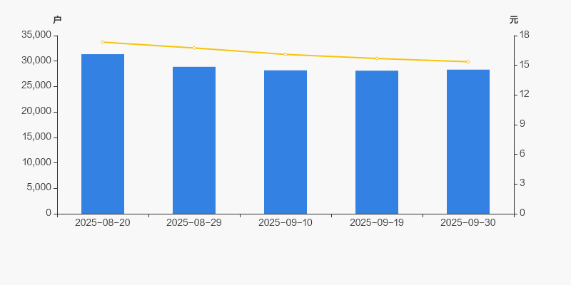 截至2025年9月30日,公司最新流通股本为2.65亿股。户均持有流通股数量为9364股,较上期略有下降;户均流通市值14.38万元。