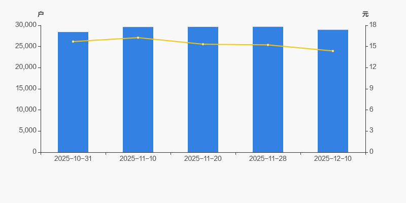 截至2025年12月10日,公司最新流通股本为2.65亿股。户均持有流通股数量由上期的8936股上升至9155股,户均流通市值13.16万元。