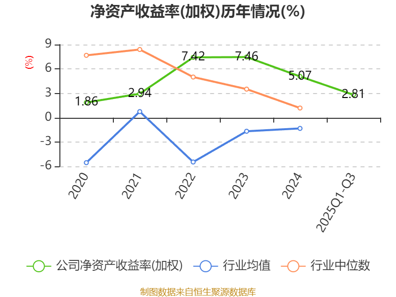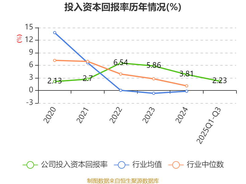 盈利能力方面, 2025年前三季度公司加权平均净资产收益率为2.81%,同比下降1.12个百分点。公司2025年前三季度投入资本回报率为2.23%,较上年同期下降0.77个百分点。