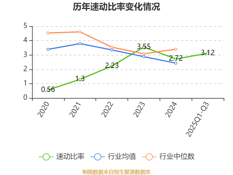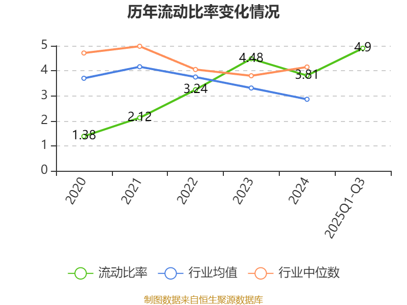 2025年前三季度,公司流动比率为4.9,速动比率为3.12。