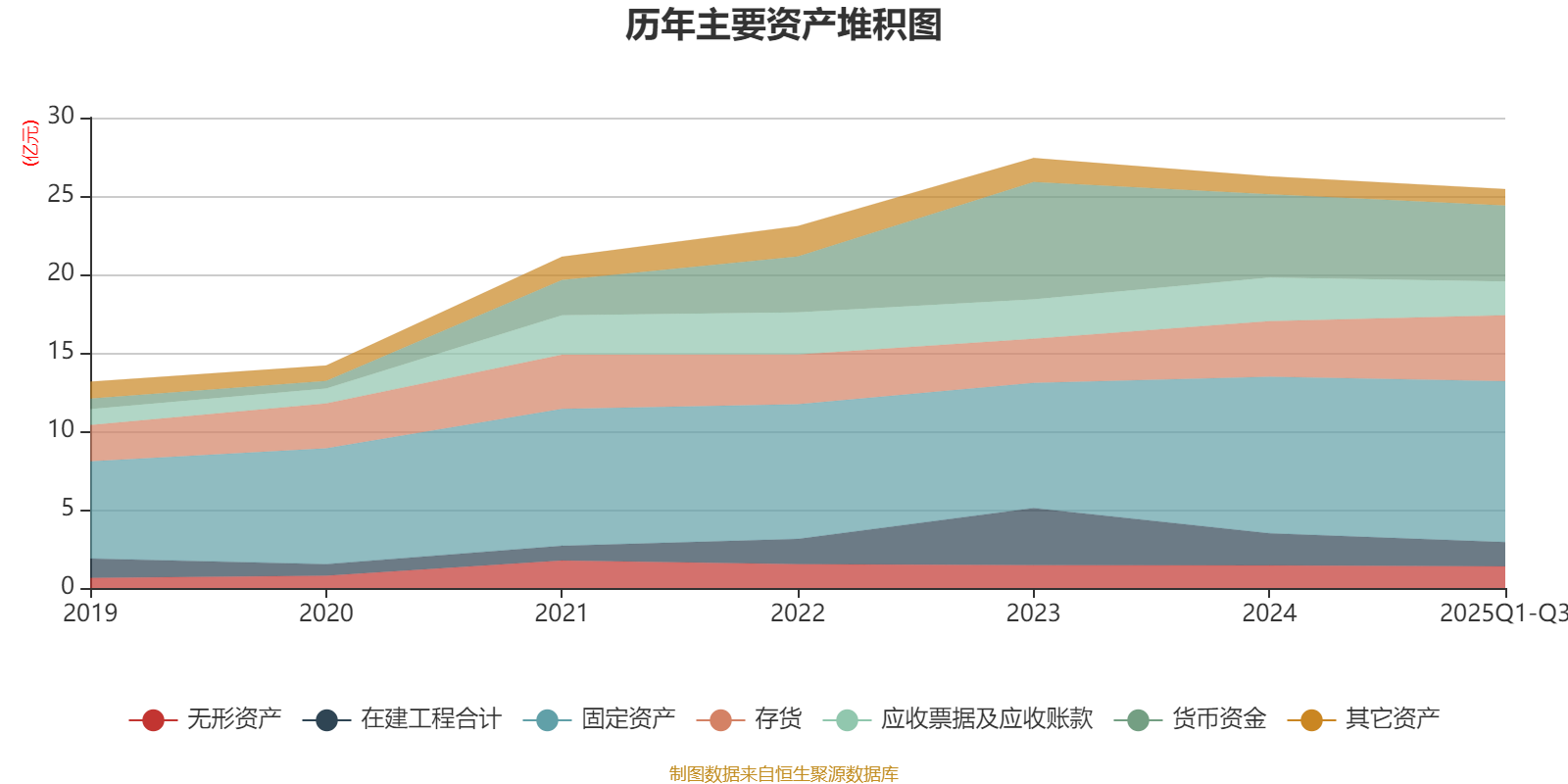 资产重大变化方面,截至2025年三季度末,公司存货较上年末增加18.61%,占公司总资产比重上升3.02个百分点;固定资产较上年末增加2.78%,占公司总资产比重上升2.3个百分点;应收票据及应收账款较上年末减少22.16%,占公司总资产比重下降2.08个百分点;在建工程合计较上年末减少24.54%,占公司总资产比重下降1.73个百分点。