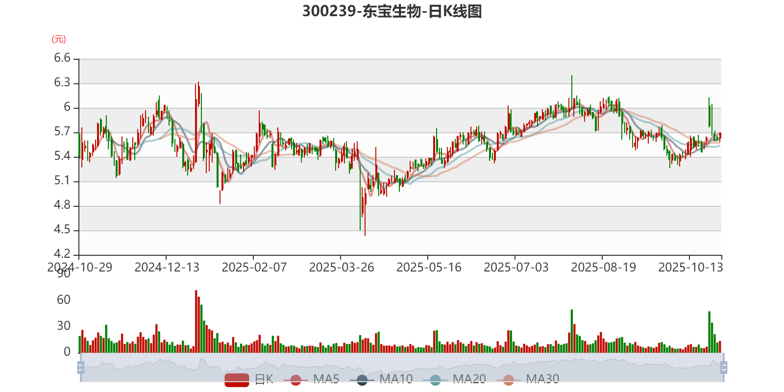 以10月28日收盘价计算,东宝生物目前市盈率(TTM)约为49.56倍,市净率(LF)约1.97倍,市销率(TTM)约4.3倍。