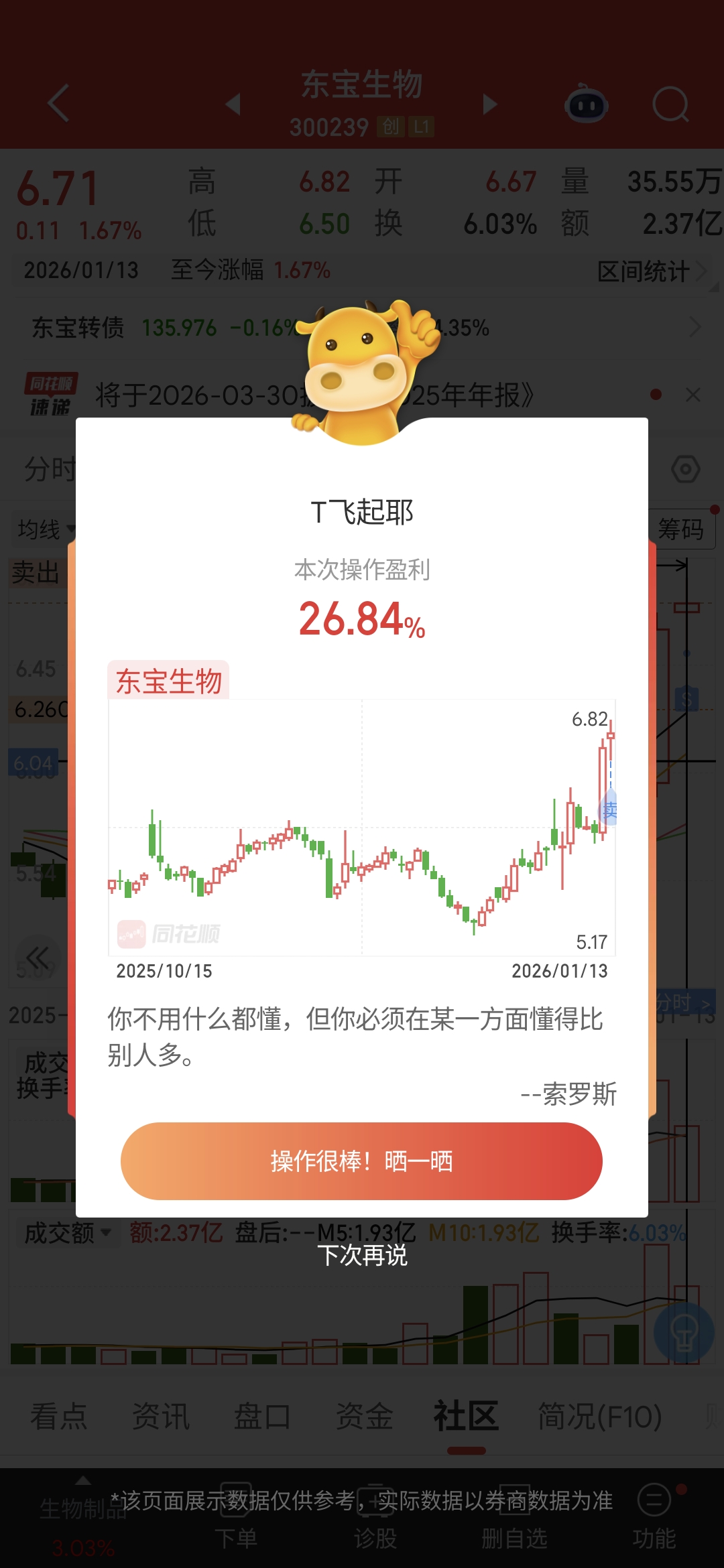 温馨提示: 1.根据《证券法》规定,禁止编造、传播虚假信息或者误导性信息,扰乱证券市场;2.用户在本社区发表的所有资料、言论等仅代表个人观点,与本网站立场无关,不对您构成任何投资建议。用户应基于自己的独立判断,自行决定证券投资并承担相应风险。《东方财富社区管理规定》