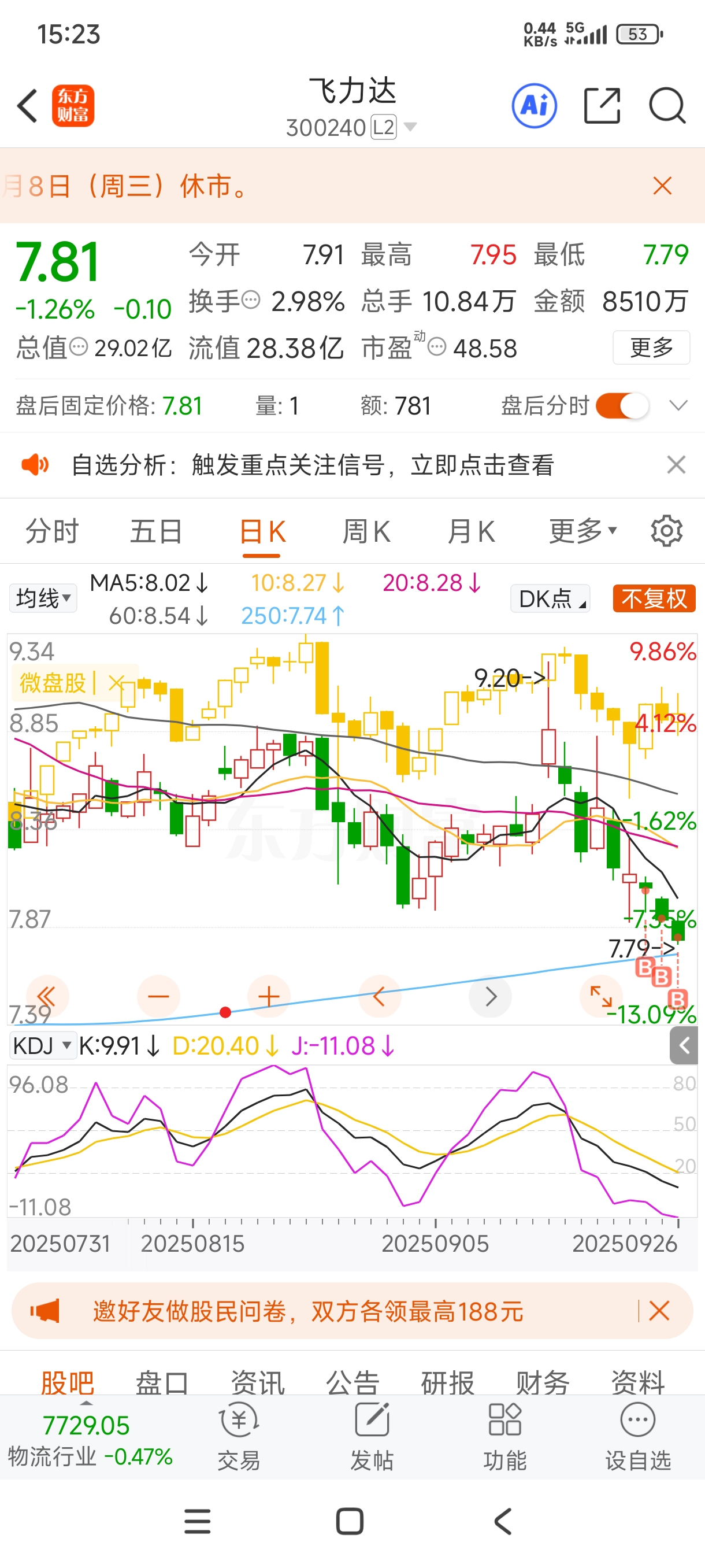$飞力达(SZ300240)$ 是因为我buy了吗,所以buy的那几天和微盘股走势不一样了