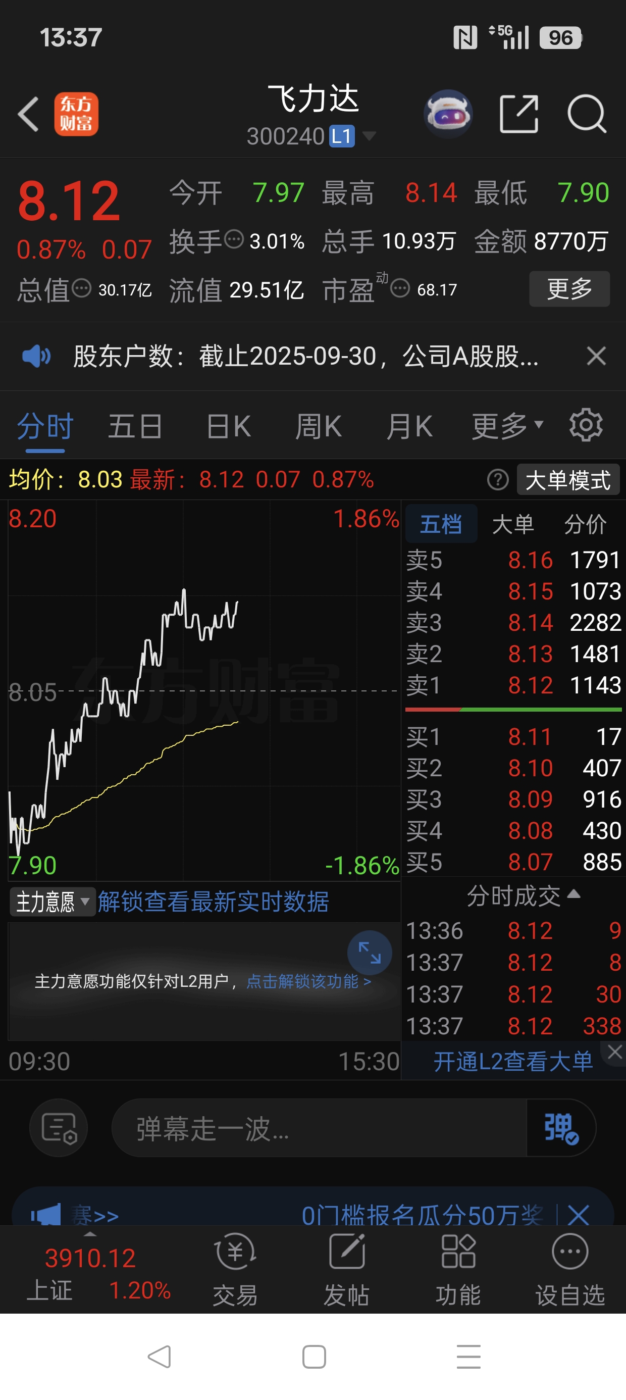$飞力达(SZ300240)$ 来验证一下,是不是压盘必涨。