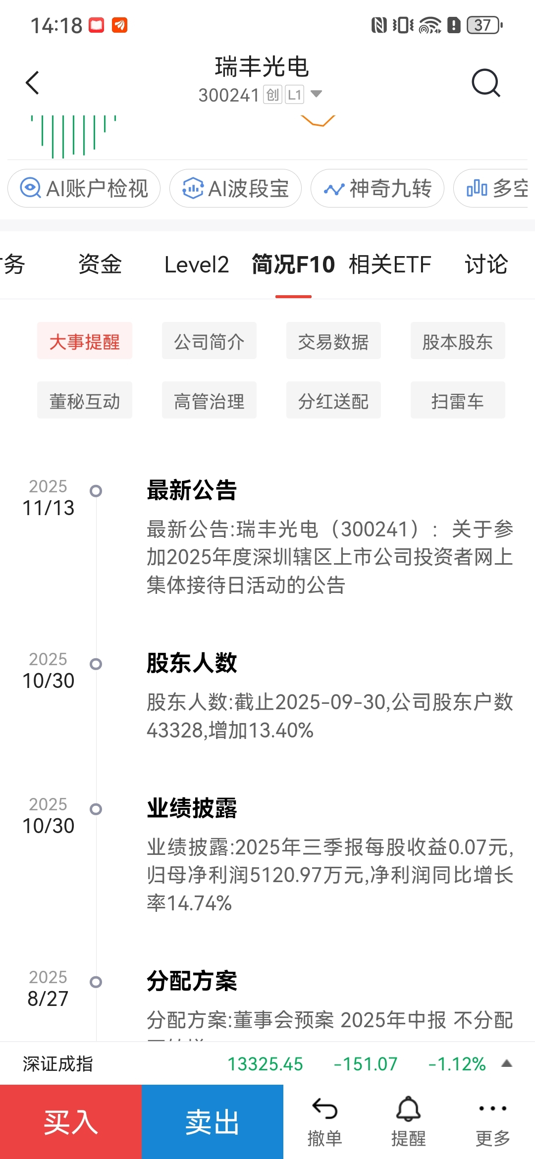 $瑞丰光电(SZ300241)$ 三季度股东人数增加了13%,说明很多主力进来抢筹,到现在都没赚钱,快点抢吧,再不抢就被主力抢完了