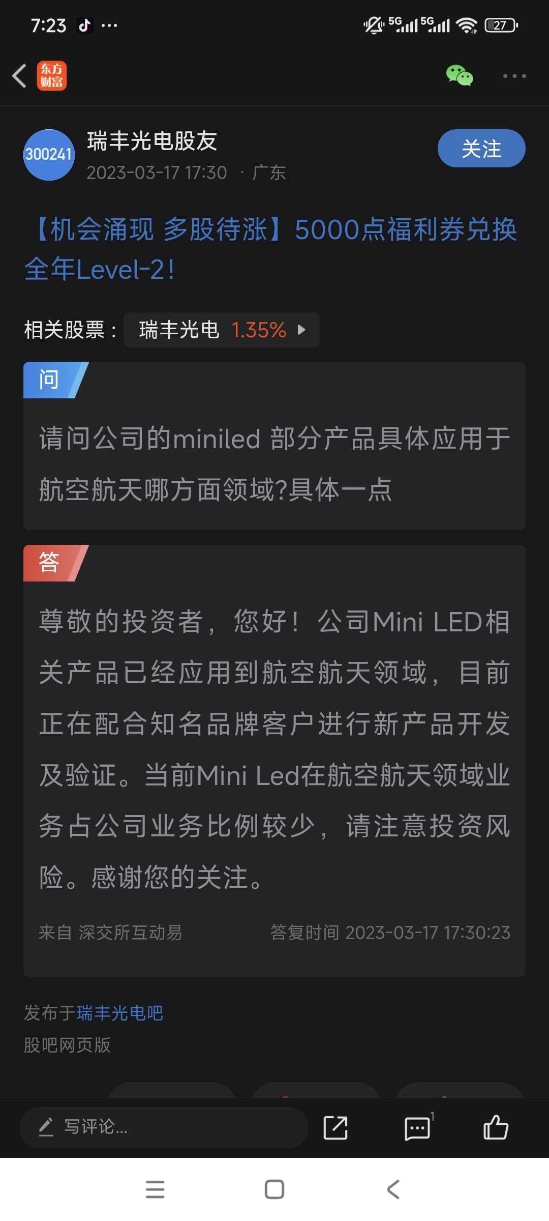 温馨提示: 1.根据《证券法》规定,禁止编造、传播虚假信息或者误导性信息,扰乱证券市场;2.用户在本社区发表的所有资料、言论等仅代表个人观点,与本网站立场无关,不对您构成任何投资建议。用户应基于自己的独立判断,自行决定证券投资并承担相应风险。《东方财富社区管理规定》