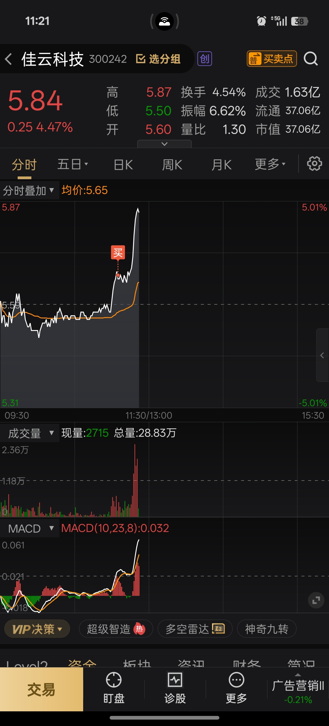 昨天有个试盘的动作,虽然有点抛压,但是尾盘主力一直在吸筹。等等看吧。既来之则安之