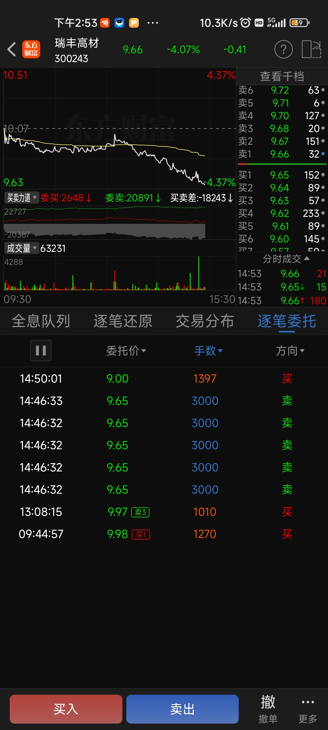 $瑞丰高材(SZ300243)$ 厉害,万手大单砸盘