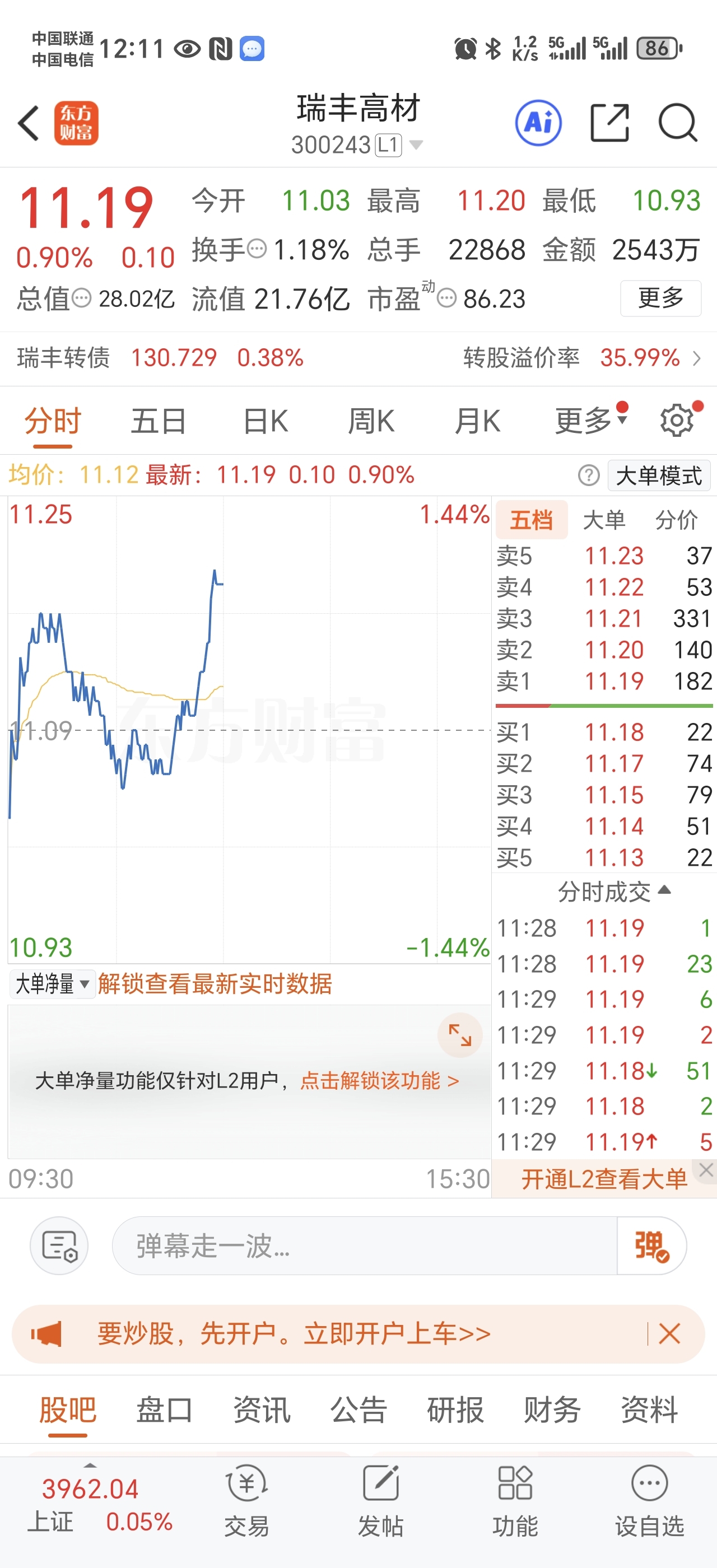 $瑞丰高材(SZ300243)$ 午后新材料异动,瑞丰高材涨停……苏大维格,先锋新材跟涨$万里扬(SZ002434)$ $湘潭电化(SZ002125)$