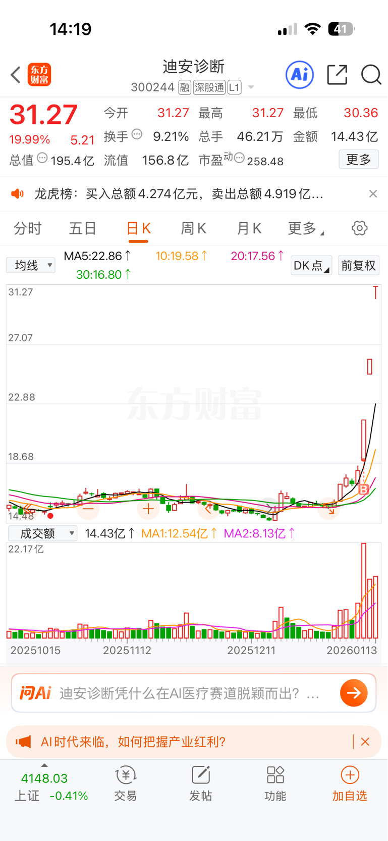 $迪安诊断(SZ300244)$ #炒股日记# 走吗?