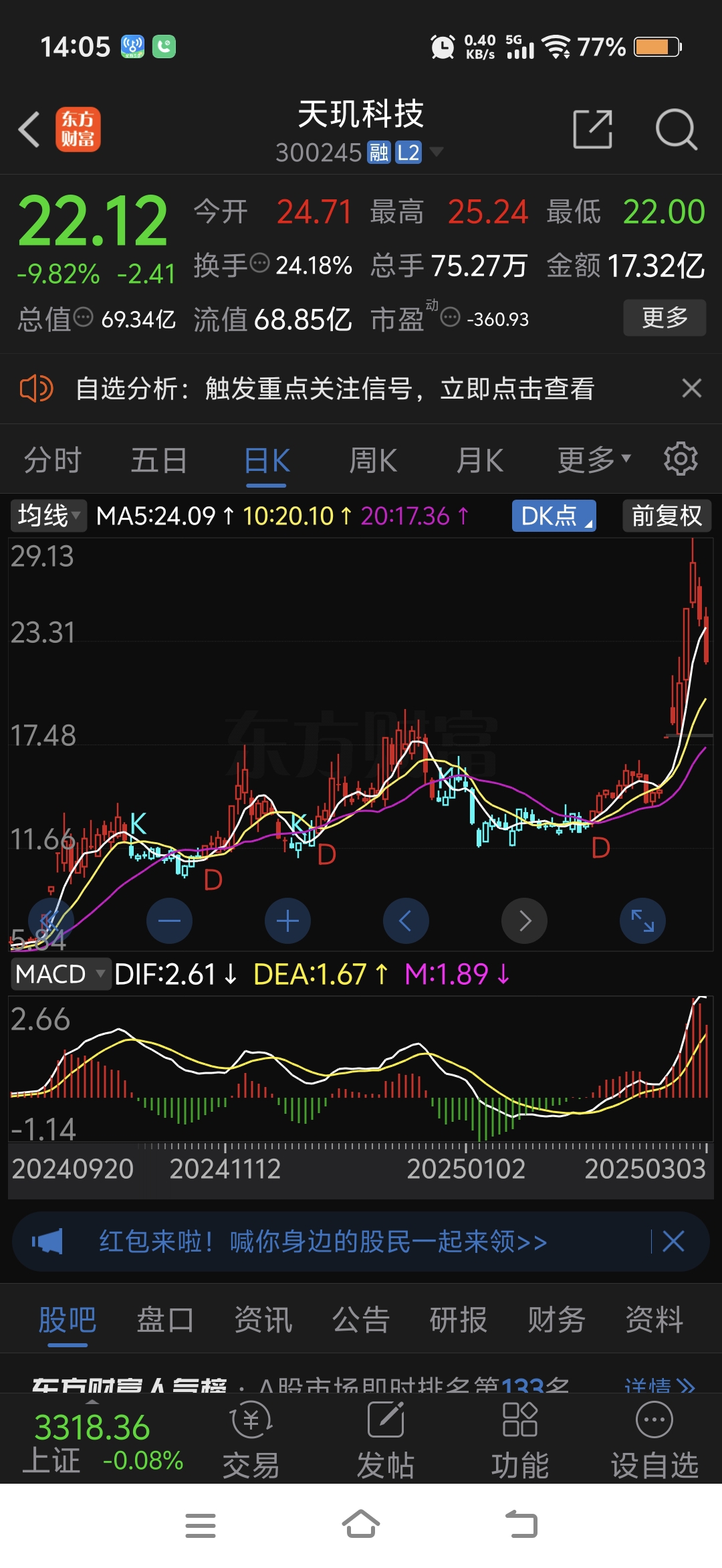 $天玑科技(SZ300245)$ 没出现k点。坚决不卖。
